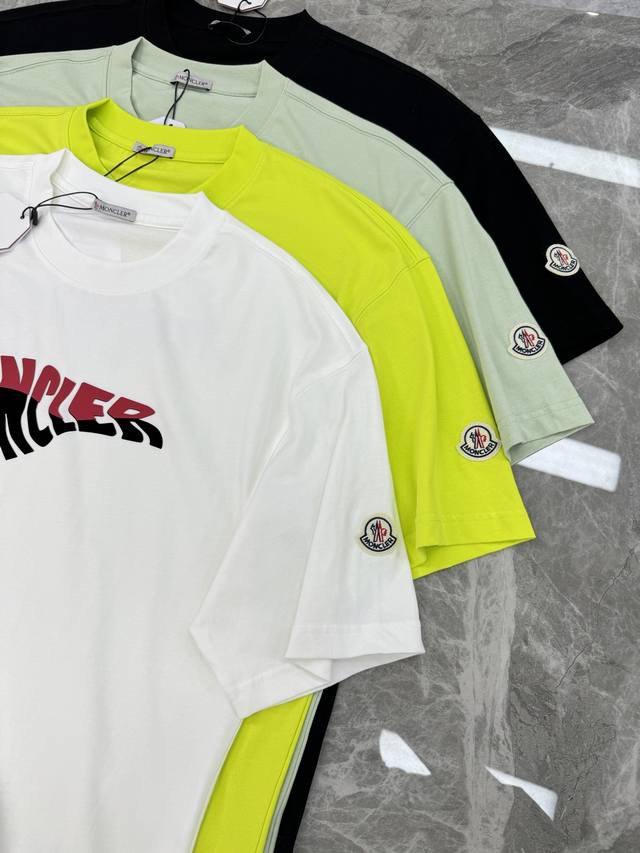 Moncle*Mon-kou 25S new fashion brand T-shirt. Unisex! Classic brand letter graphics on the chest with three-dimensional vision. Classic style heat transfer design. Fashionable and durable. 230G pure cotton fabric, soft and comfortable. Breathable and thin. Top elements are integrated to create a classic T-shirt. The fabric is soft and comfortable. Highly recommended! Three standards are complete! Colors: white, black, fluorescent green, avocado green. Size: S-3Xl slightly expanded version! 175 145 catties recommended L