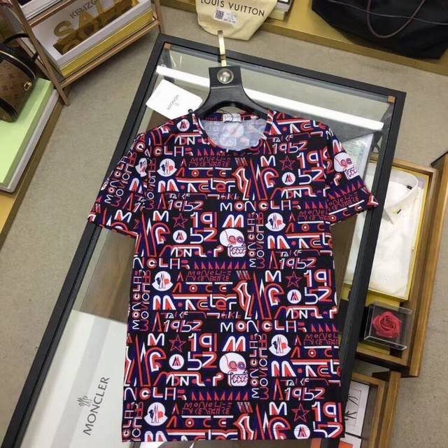 Moncle.R 20Ss summer new style bright red logo color printing short T-shirt 3D high-definition digital direct printing process original custom imported fabric fine workmanship code number - Size: S-3Xl Please indicate height and weight