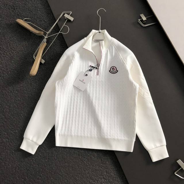 2025 Autumn and Winter Yunrou series double fabric splicing red and white outline zipper logo label inner brushed fashionable versatile stand collar long sleeve sweatshirt, exquisite craftsmanship counter fabrics, top elements fusion to create, 3 complete labels, fashionable men's fashion, whether it is upper body comfort or is unparalleled.