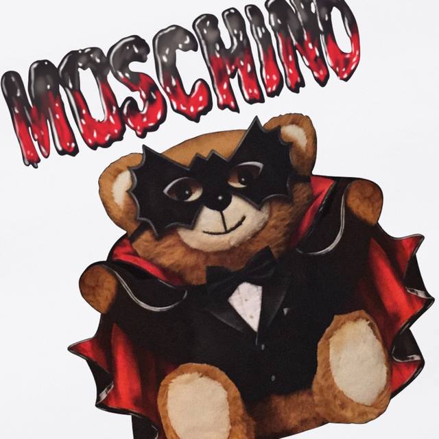 Moschino 440g printed terry crewneck sweatshirt. Breathable pure cotton fabric is very soft and comfortable, and will not shrink, deform, or pill. Original custom accessories include collar label, care label, hang tag, and packaging details. Perfect color, white and black, sizes Xs-Xl