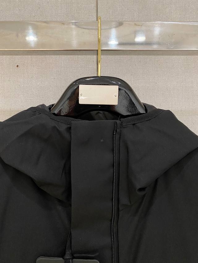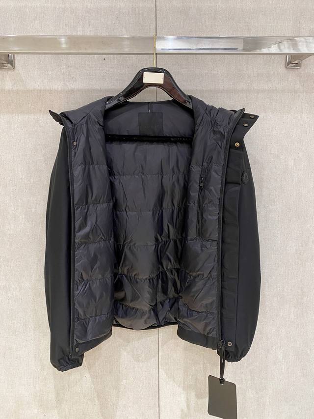 M's Autumn/Winter Men's Praz Drawstring Hood Cropped Down Jacket. This Praz Drawstring Hood Cropped Down Jacket is a piece from the autumn/winter men's collection, primarily in black, combining style and practicality. This Praz down jacket features a simple yet elegant black design. Its unique drawstring hood adds a touch of style while providing extra warmth in cold winds. The cropped cut accentuates a man's sharp, sharp look. This jacket is crafted from a custom, thick, stretch-knitted, thermally-insulating fabric that not only provides excellent warmth but also offers excellent elasticity and abrasion resistance. The custom knitting process creates a tighter fit, effectively preventing cold air from entering. The lining is filled with high-quality 90% white goose down, ensuring the jacket's warmth. The predominantly black color scheme makes this jacket a classic and versatile piece, making it a stylish and effortless choice for both formal and casual occasions. Its custom stretch knitted thick warm fabric and unique design style make it stand out among many down jackets and become the first choice for men in autumn and winter.