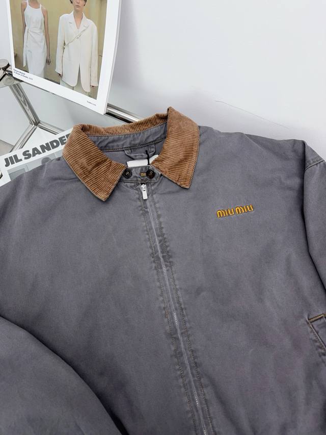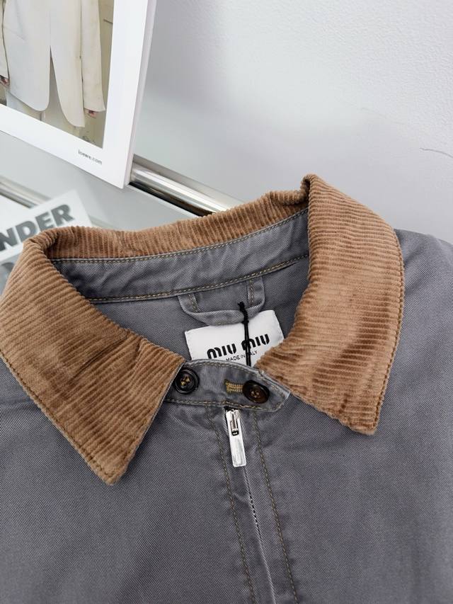 Mu Miu Miu 25Ss distressed corduroy collar quilted jacket.