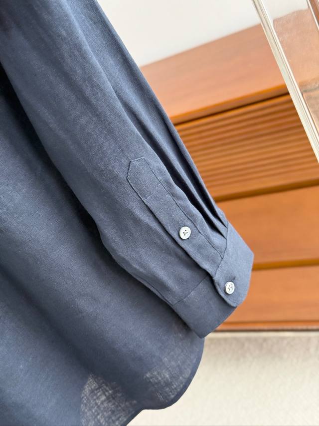 This shirt is made from custom-woven 100% linen fabric. This highly absorbent and breathable fabric is comfortable next to the skin, keeping you warm and comfortable. It can be worn alone or as an outer layer. The loose fit creates a simple, stylish, and elegant look.