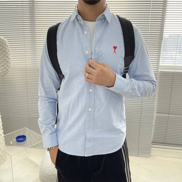 Ami embroidered contrasting logo Oxford shirt.