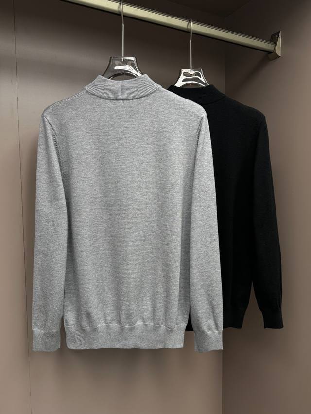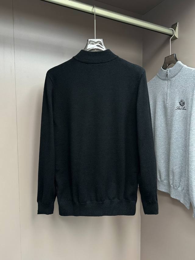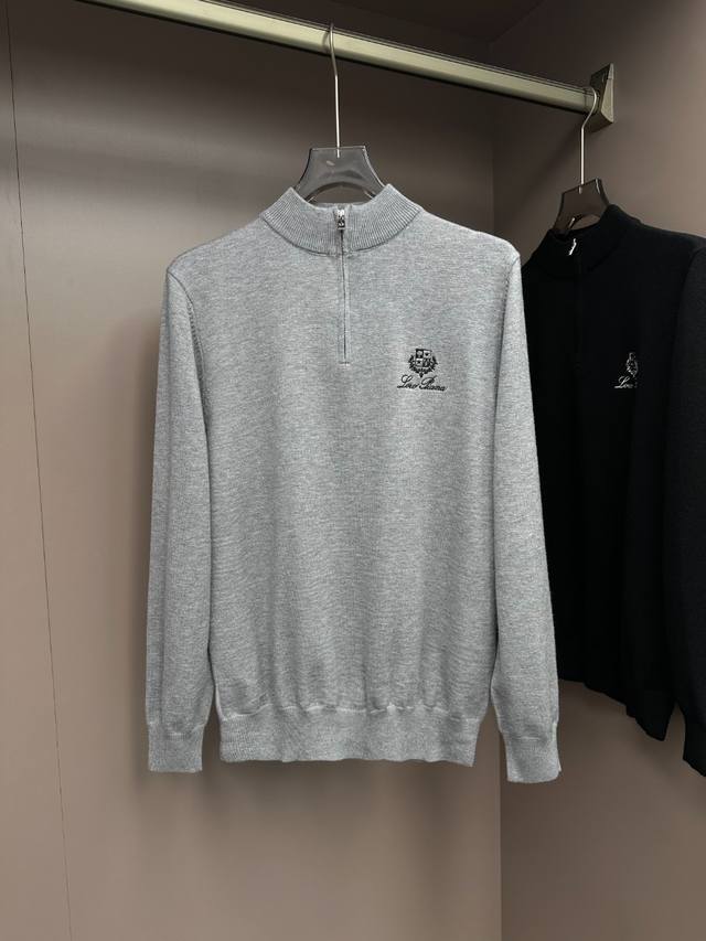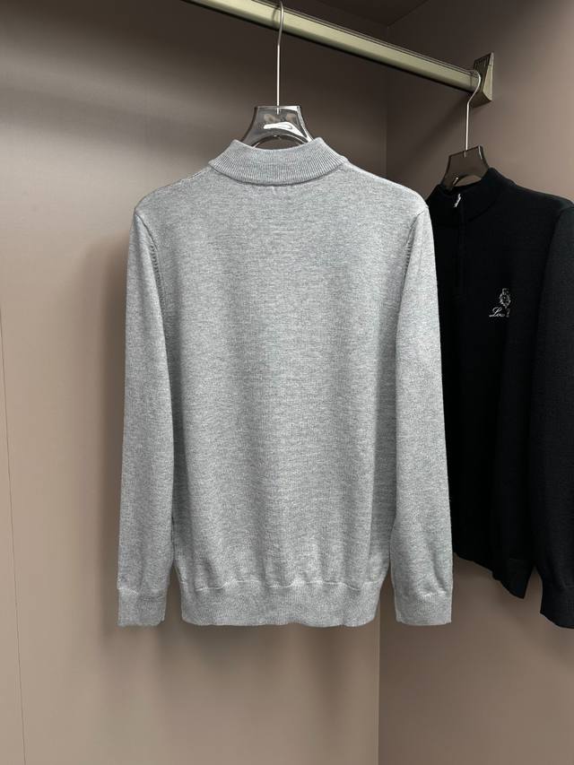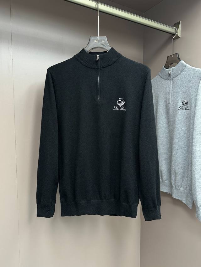 New arrival from Hong Kong import channels, a premium high-end product. 2025 Autumn/Winter new style Lo*O pi*Na embroidered logo men's business casual high-end zip-up mock neck wool sweater. The overall design has a strong signature, perfectly showcasing the Lo*O pi*Na embroidered logo on the chest