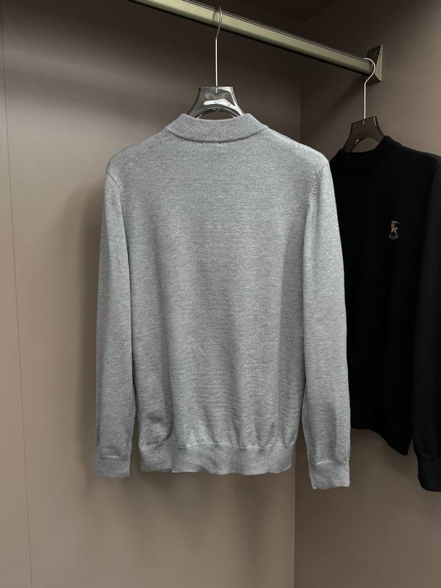 New arrival from Hong Kong trading company. 2025 Autumn/Winter new Bur*Erry classic horse jacquard wool knit pullover sweater with exclusive logo. Its charm lies in creating a simple yet luxurious fashion sense, easily paired with various styles to experience the unique British style. Made from premium Merino wool, the knit density reflects its noble and extraordinary quality. Comfortable and warm, with a delicate texture and excellent drape. The classic exclusive logo embroidered badge needs no explanation. Machine needlepoint embroidery technique, full and three-dimensional, showcasing beauty. Colors: Black, Gray. Sizes: M, L, XL, XL, XL. Size data: M: Bust 100cm - Shoulder 44cm - Length 66cm - Sleeve 55cm; L: Bust 104cm - Shoulder 45cm - Length 67cm - Sleeve 66cm. XL: Chest 108cm - Shoulder 46cm - Length 68cm - Sleeve 67cm (Ddd) XL: Chest 112cm - Shoulder 47cm - Length 69cm - Sleeve 68cm (Ddd) XL : Chest 116cm - Shoulder 48cm - Length 70cm - Sleeve 69cm (DDD)