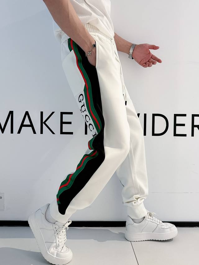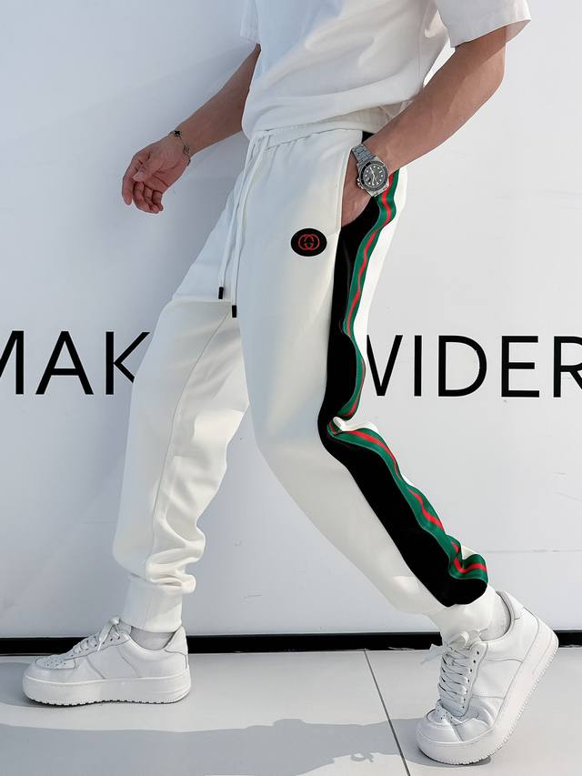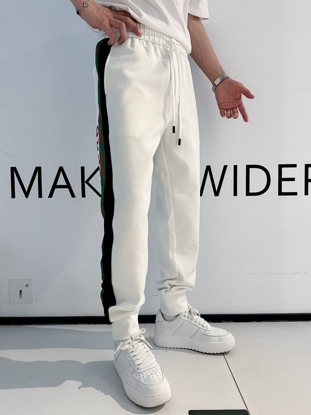 2025 G classic side webbing casual trousers, customized fabrics, super texture, comfortable and soft trendy unisex trousers