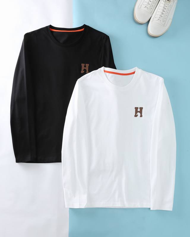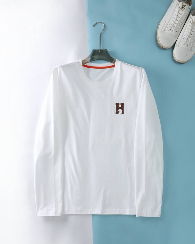 New arrival, He Emma* 2025Fw Early Fall, a classic men's casual crew-neck long-sleeved T-shirt with a classic "H" leather label! Available now through trading companies and simultaneously on Gw! Made from heavyweight jersey cotton, it's not only thick and soft to the touch, but also visually exudes an indescribable sense of luxury, ensuring the garment's overall crispness and shape. Even after multiple washes, it retains its original shape and comfort. The classic "H" leather label on the chest adds a strong three-dimensional feel, enriching the overall graphic and creating a stylish and refined look. The overall clean design exudes a sense of understated luxury, perfectly meeting the modern aesthetic of practicality and versatile style. It's also stylish, making it a must-have for fall and winter! Item No.: D2421 Size: 48 M-56 3Xl