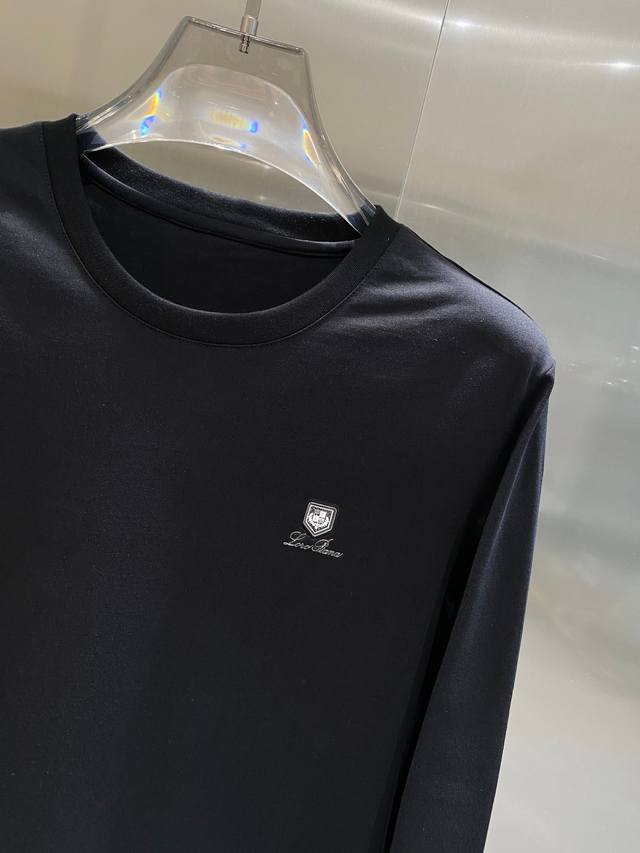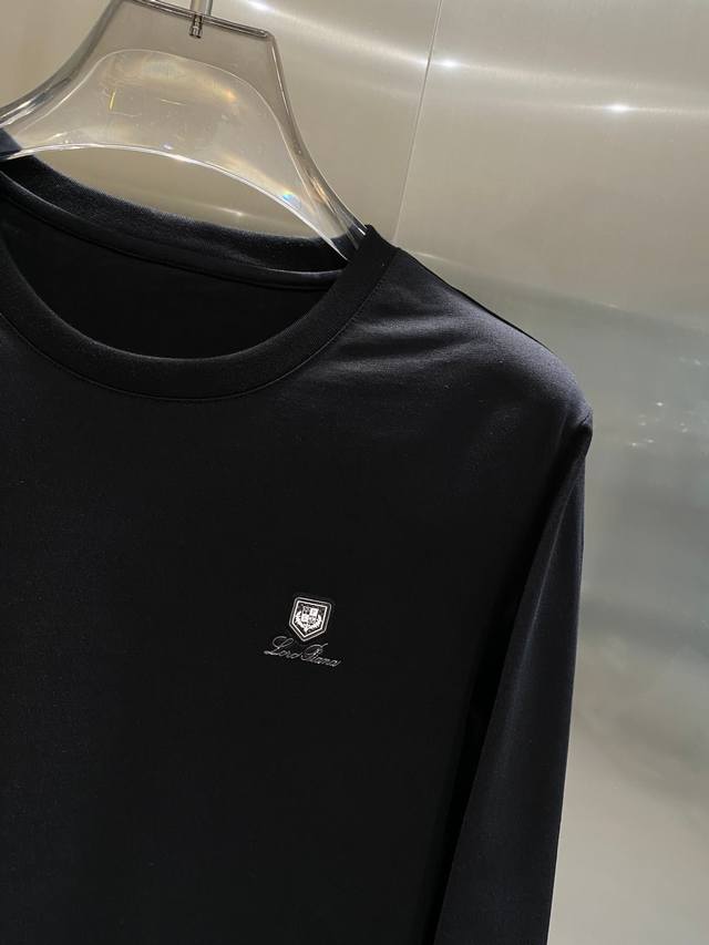 New arrival, long-sleeved Lor* piana, Aw's new early fall collection. This versatile, solid-color, long-sleeved T-shirt features a classic offset-printed chest badge. Made from carefully selected imported 100% plain cotton, it offers a smooth, durable feel. The custom-woven ribbed neckline provides a thick, stretchy texture and a comfortable fit, preventing any constriction or deformation. The intricately designed, three-dimensional badge on the chest is meticulously crafted using advanced silicone and embossing techniques. The silicone material not only ensures durability and environmental friendliness, but also the ingenious embossing technique creates a distinct, three-dimensional effect, resembling a miniature work of art embedded within the collar. The simple yet stylish straight-cut design preserves the classic charm of a T-shirt while cleverly flattering the figure. Whether worn casually or everyday, it perfectly complements the wearer's natural, flowing form and refined style. Item No.: D2417 Size: 48 M-56 3Xl