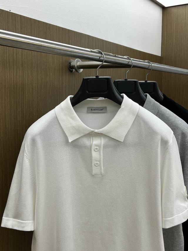 New arrival Mon 2540 Spring/Summer knitted lapel polo shirt, made from imported yarn for a soft feel. The chest pattern features three-dimensional embroidery, and the front buttons are embroidered with a logo. The classic lapel design is both neat and stylish, perfectly framing the neckline. Whether worn alone or with a jacket, it showcases your gentlemanly demeanor. This top-tier imported private label boasts undeniably luxurious quality. The look is stunning. Color: Pictured. Sizes: S-XL. Please specify your height and weight.