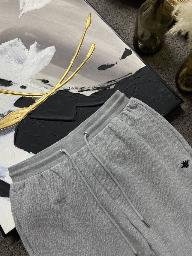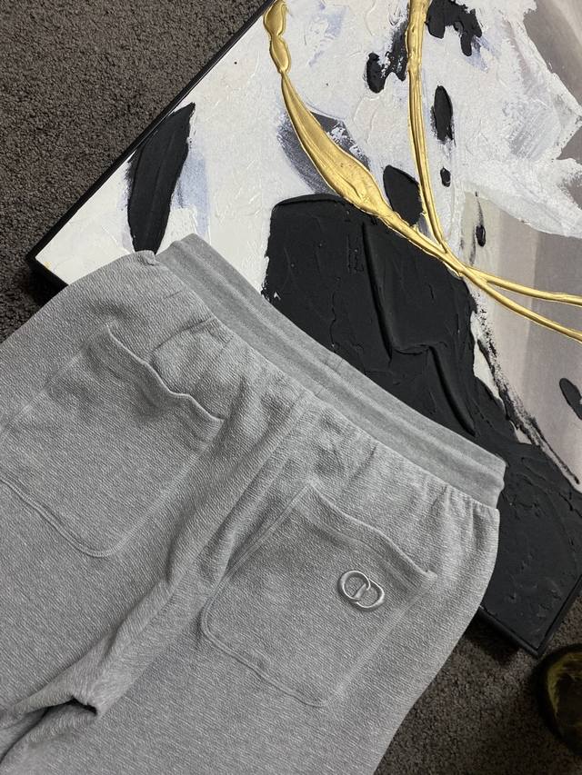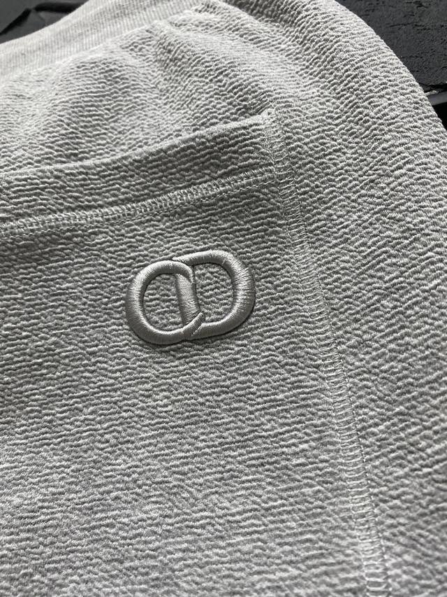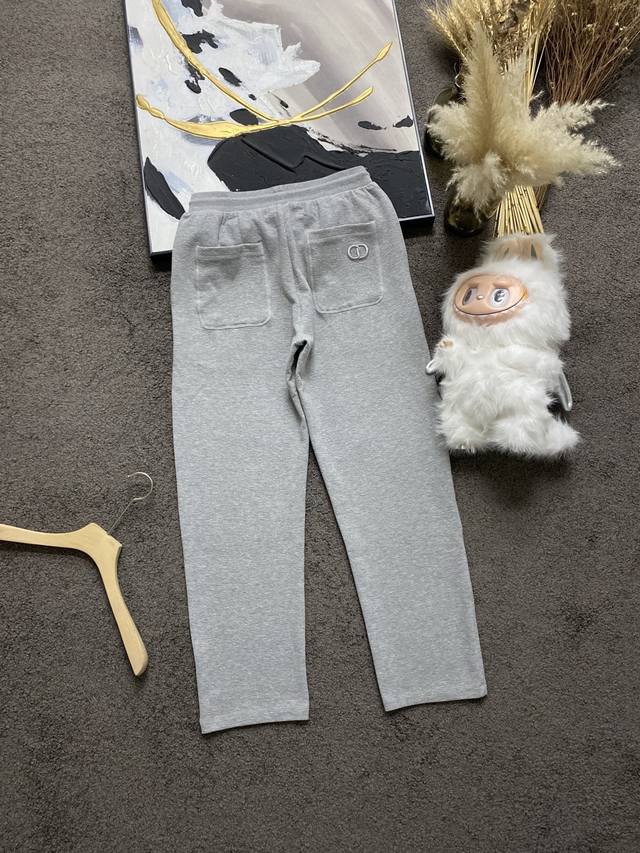 These trousers reinterpret a classic wardrobe staple with couture elements. Crafted from an exclusive, high-end, crinkled cotton gray blend knit, they feature a ribbed waistband, delicate bee embroidery on the front, and a Cd logo embroidery on the back. Side and back patch pockets create a casual, stylish look.