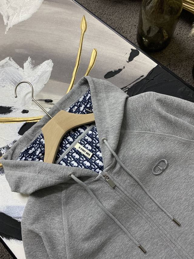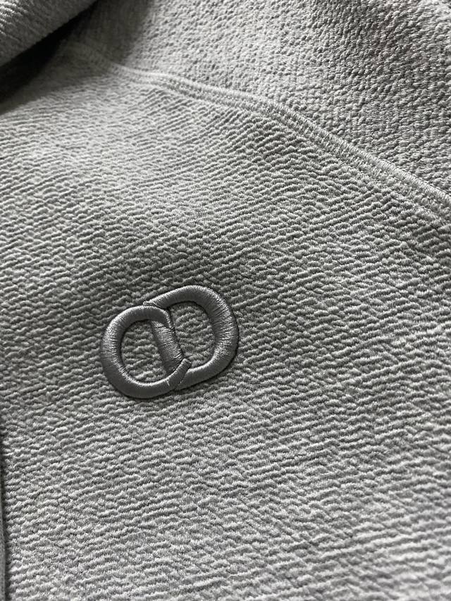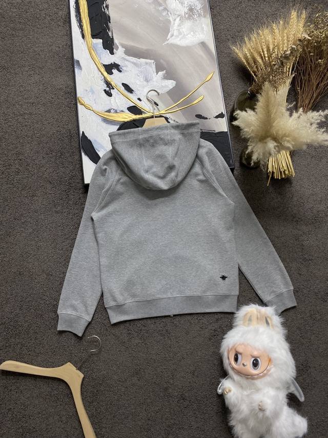 This hooded jacket incorporates classic couture flair into a basic piece. Crafted from an exclusive, premium-grade plain crinkled cotton gray blend knit, it features an embroidered Cd logo on the front and a delicately embroidered little bee pattern on the back. The inside of the hood is decorated with an oblique print and features kangaroo pockets, creating a casual and stylish look.