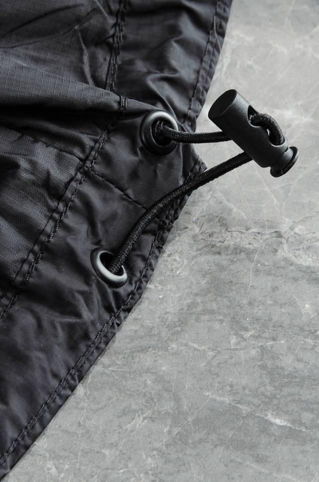 - Drawstring hood and hem