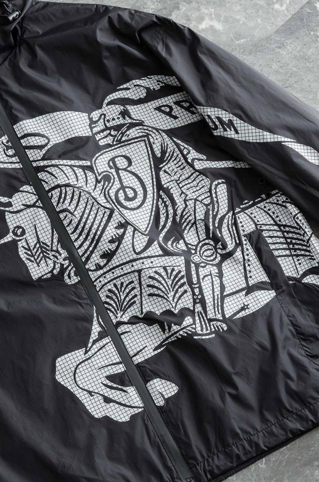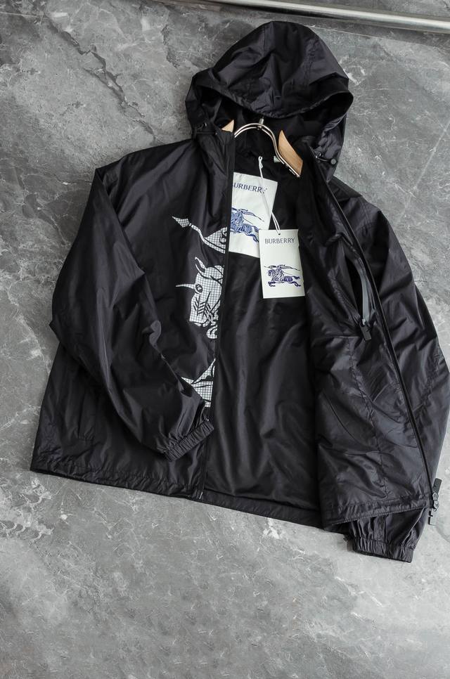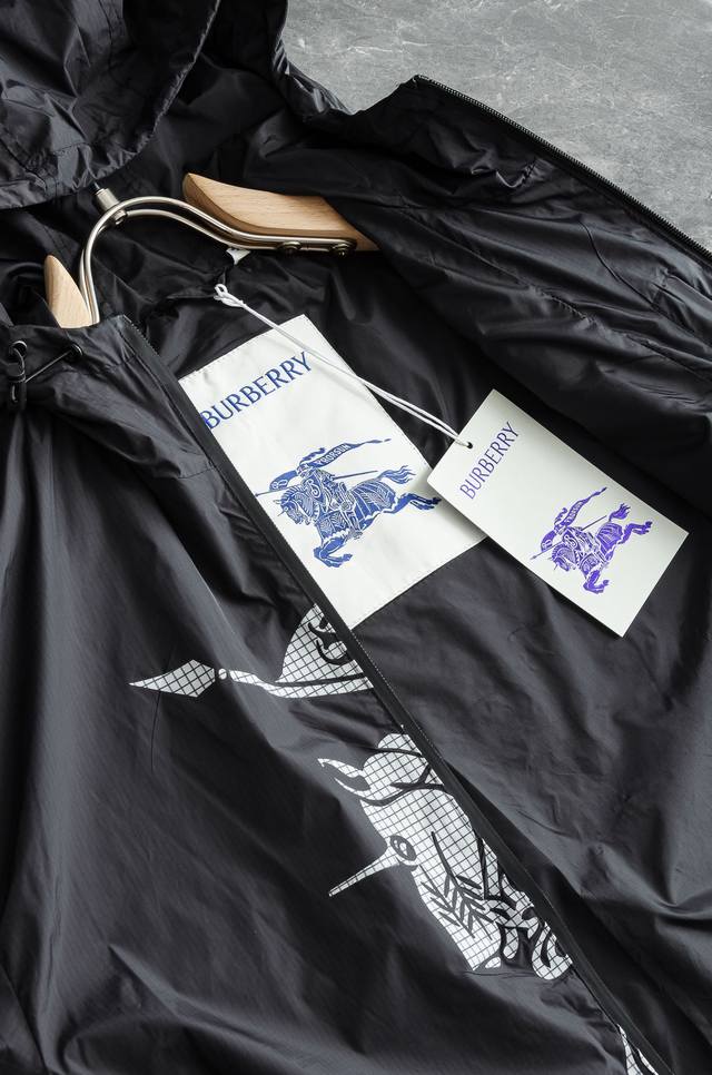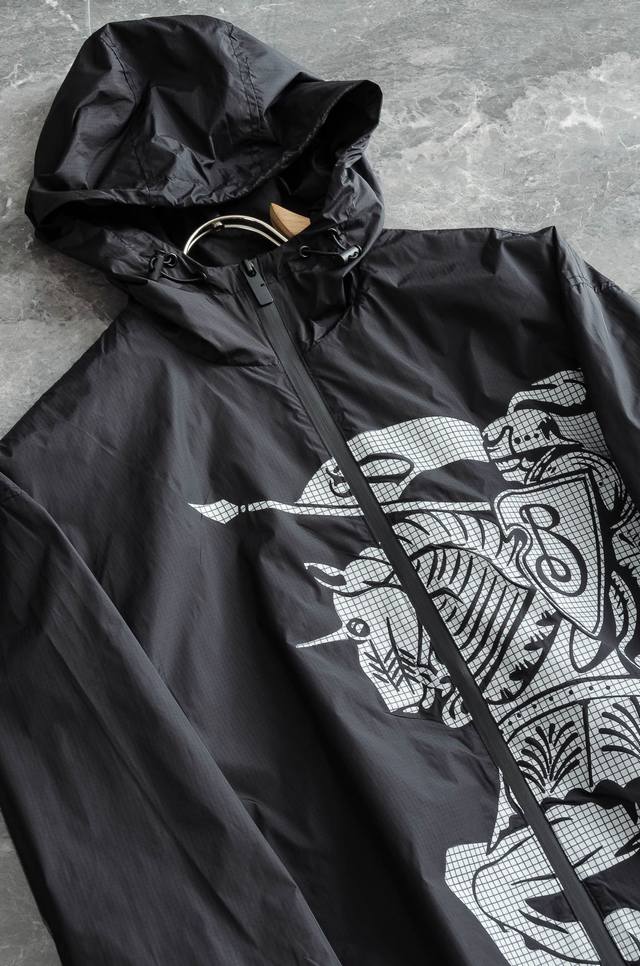 Burbe#* Rry 3 25Fw high-top nylon jacket with hood, made from Italian fine pleated nylon fabric, with a loose fit. Incorporating the Ekd concept, the equestrian knight's logo, it pays tribute to the brand's innovation for pioneers of adventure.