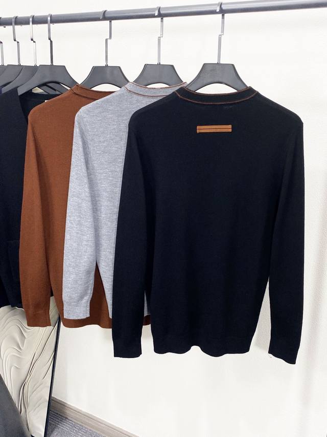 New Ermenegildo Zegna men's high-end cashmere and wool blend cashmere sweater, premium ready-to-wear collection, 2025 Autumn/Winter new arrival, purebred quality, a top-tier sweater of the year!! Born from classic design, a signature item that T releases every season, returning with each season's cycle, the new season continues the design tone of the E family, showcasing Italian urban elegance to the extreme. The classic Zegna logo mixed with lettering is perfectly incorporated into the chest, while the side knitted ribbon is presented in embroidery, a soulful embellishment that enriches the overall visual appeal. Made of Merino wool, custom-knitted with top-quality German machines, the stitches are delicate, the craftsmanship exquisite and complex, something that domestic machines cannot produce. It has a soft, thick feel, superior warmth, and an excellent skin-friendly experience. Close-up details are impeccable; from the main fabric to the details, every aspect showcases the craftsmanship of fashion. Available in three colors! M-XXL 020 DDD