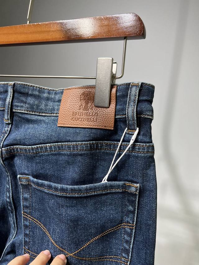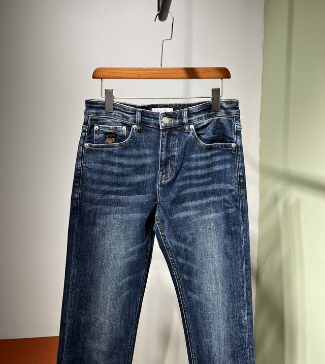 New Fall/Winter Bc~2025 Fall/Winter Men's Business Casual Blue Denim Jeans. Sourced from a trading company, these jeans are manufactured by a high-end, OEM manufacturer. 100% authentic quality. With 25 years of experience, these jeans have been a season-defining hit, a true textbook example! These aesthetically pleasing pants, focused on fabric and quality, maintain the essence of traditional design. Label elements are perfectly integrated, with a new leather patch on the back pocket and the classic metal triangle logo, creating a unique and distinctive look.