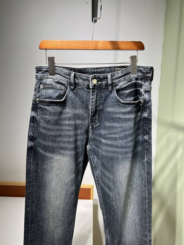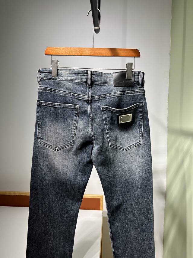 New Fall/Winter Dg 2025 Men's Business Casual Blue Denim Jeans. Sourced from a trading company, these jeans are manufactured by a high-end, OEM manufacturer. 100% authentic quality. With 25 years of experience, they've been a season-defining hit, a true textbook example! These aesthetically pleasing jeans, focused on fabric and quality, maintain the essence of traditional design. Label elements are perfectly integrated, with a new leather patch on the back pocket and the classic metal triangle logo, creating a statement piece.