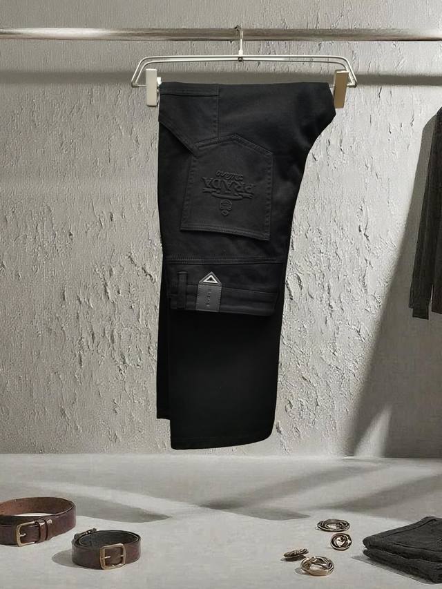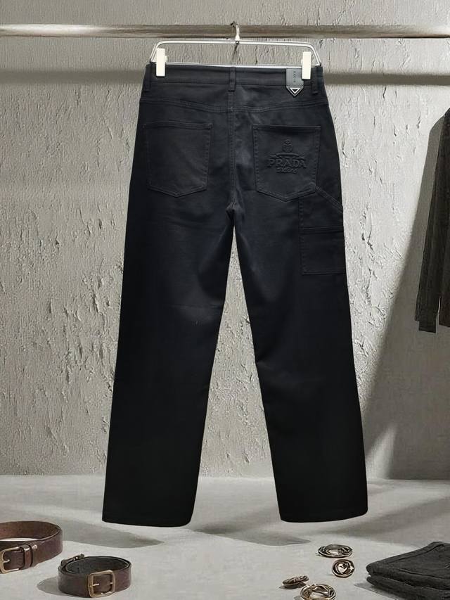 New fall/winter Prada straight-leg jeans, the latest style with casual side pockets, this season's most popular style. Custom-made fabric is soft and textured, with a strong drape. The shape of the pants is visible on the upper body, not the legs! Slimming and height-enhancing, perfect for pairing with other styles!