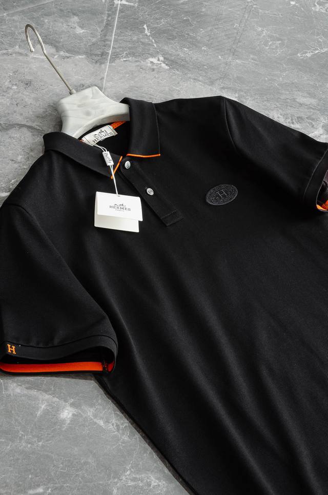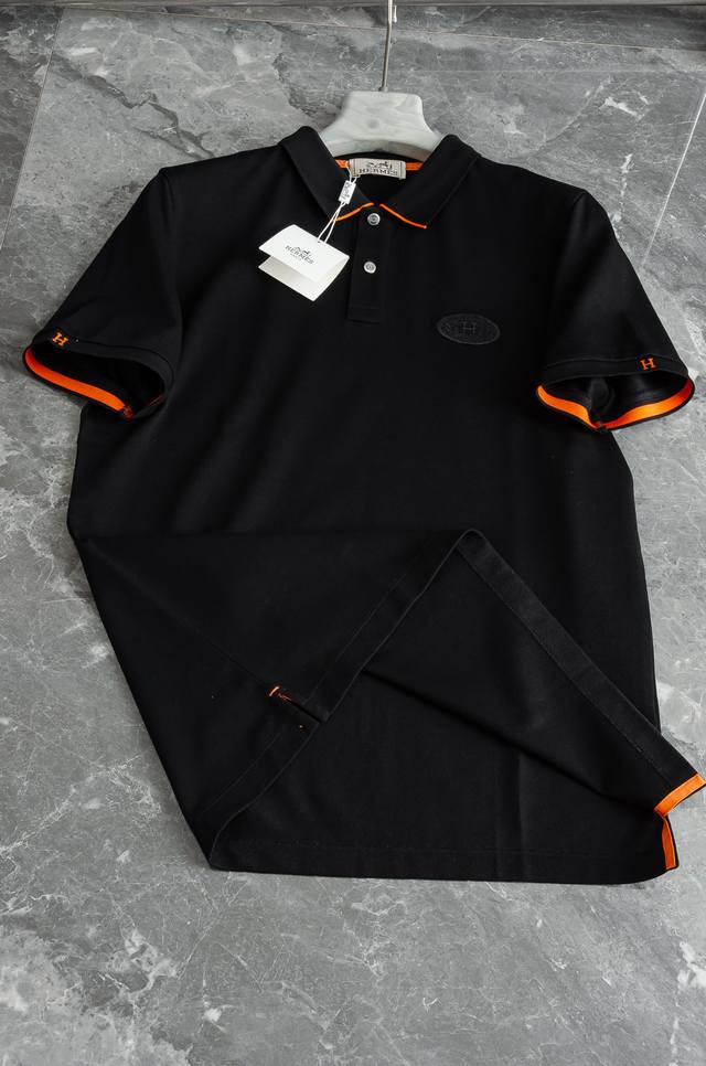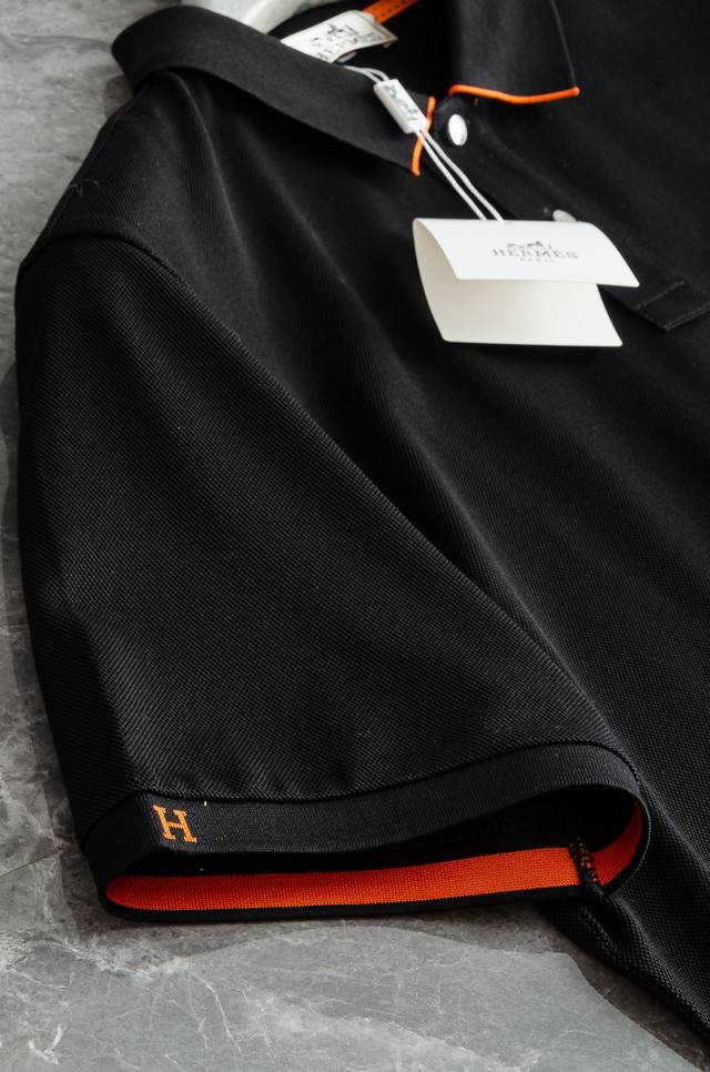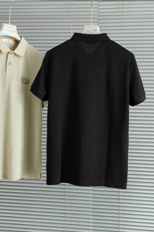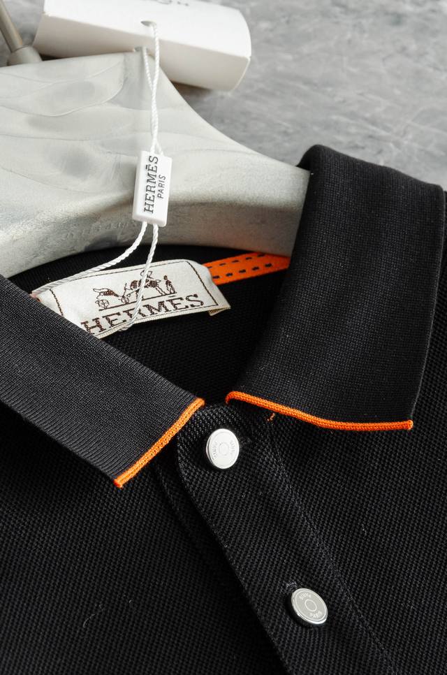 new# Her#Mes2025Ss new spring and summer mesh polo shirt, men's lapel business c