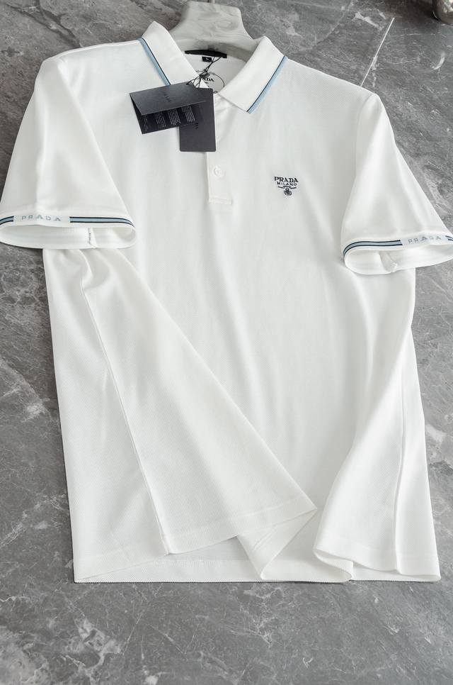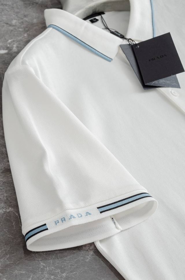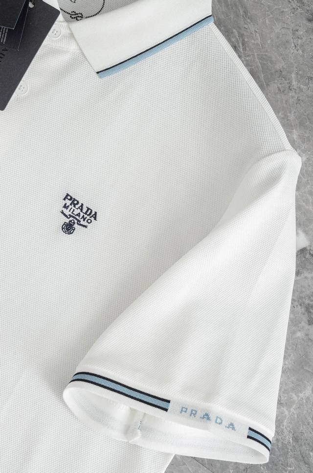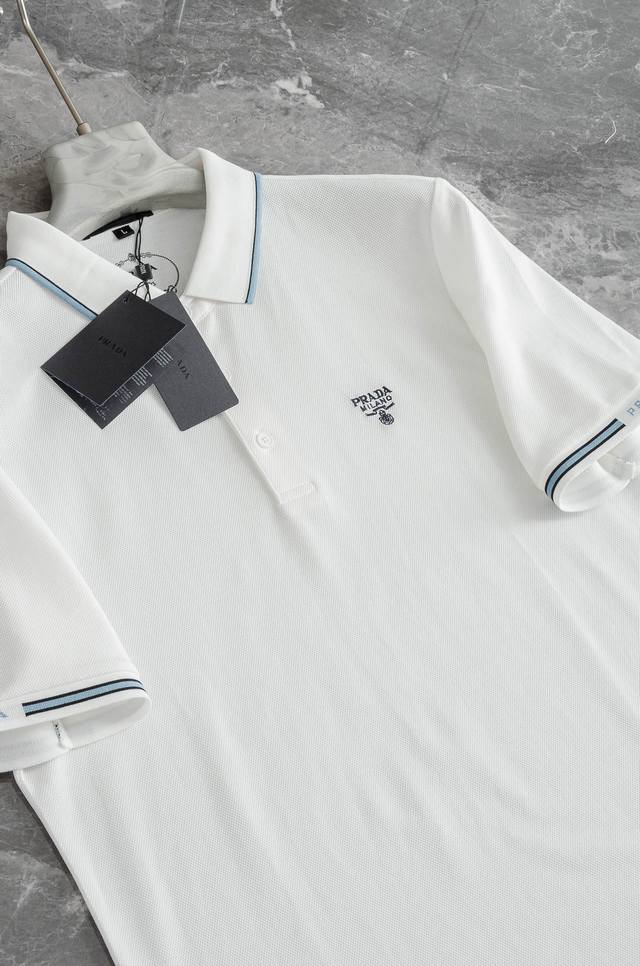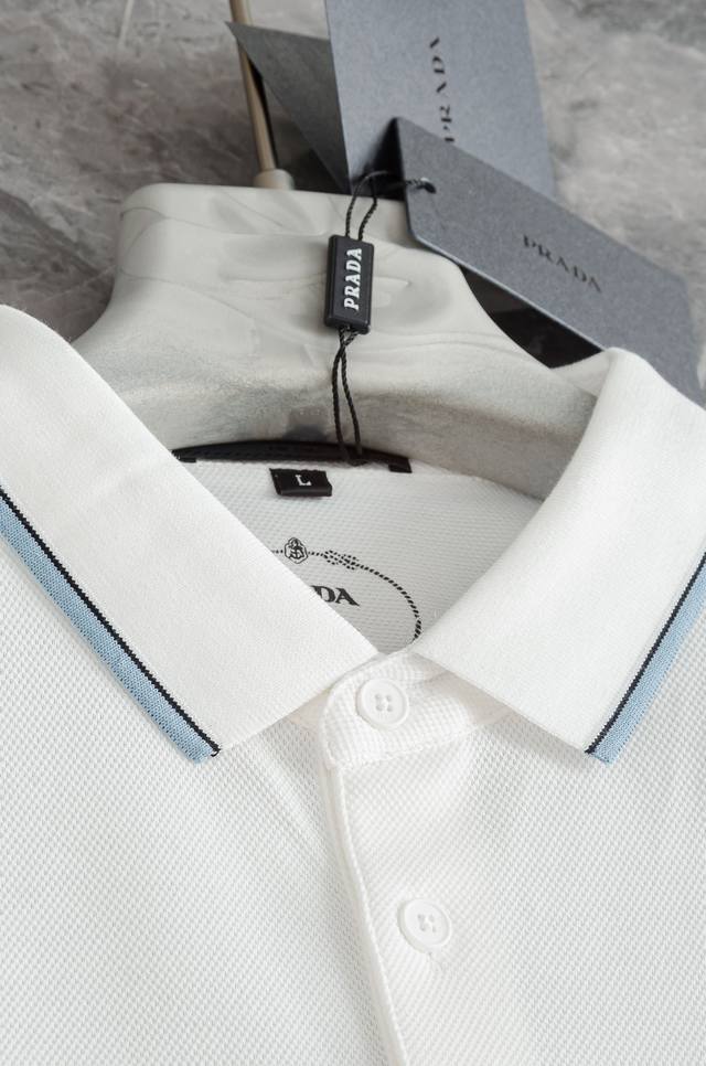 new# prad#A Prada 2025 Men's Business Casual Solid Color Lapel Short-Sleeved Pol