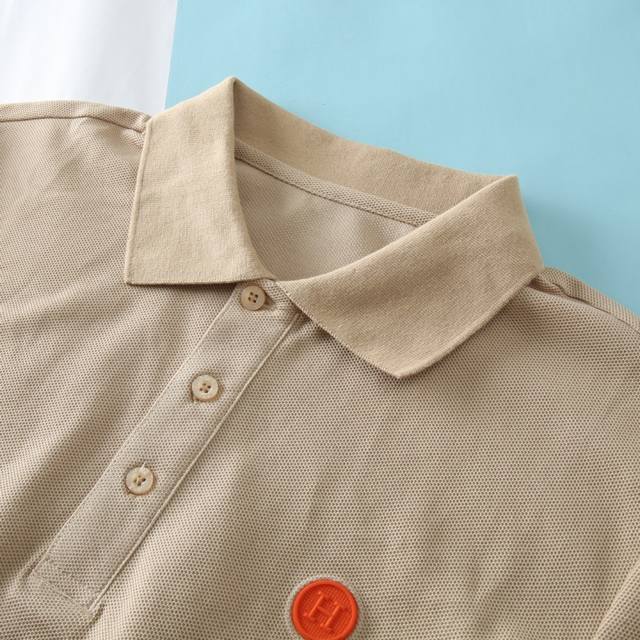New product He Emma* 25Ss Spring and Summer new high-quality mesh beaded cotton cloth contrasting lapel short T-shirt, men's classic "H" orange silicone logo on the chest decorated with business casual short-sleeved Polo shirt! Made of 100% high-quality mesh beaded cotton cloth, the fabric is smooth and skin-friendly, and the meticulous and delicate holes inside make you feel comfortable and breathable even in the hot summer, and say goodbye to the sticky feeling! The classic orange "H" silicone logo design on the chest of the body is simple and elegant, showing your unique taste and charm! The natural deep-sea shell button provided by the customer reflects the noble quality and nobleness everywhere! It can be easily taken out for business and leisure, with a basic straight-tube cut, the upper body is three-dimensional and slim, and it can withstand the precipitation of time, reflecting the noble man's aura! Item No.: D2403 Size: 48 M-56 3Xl