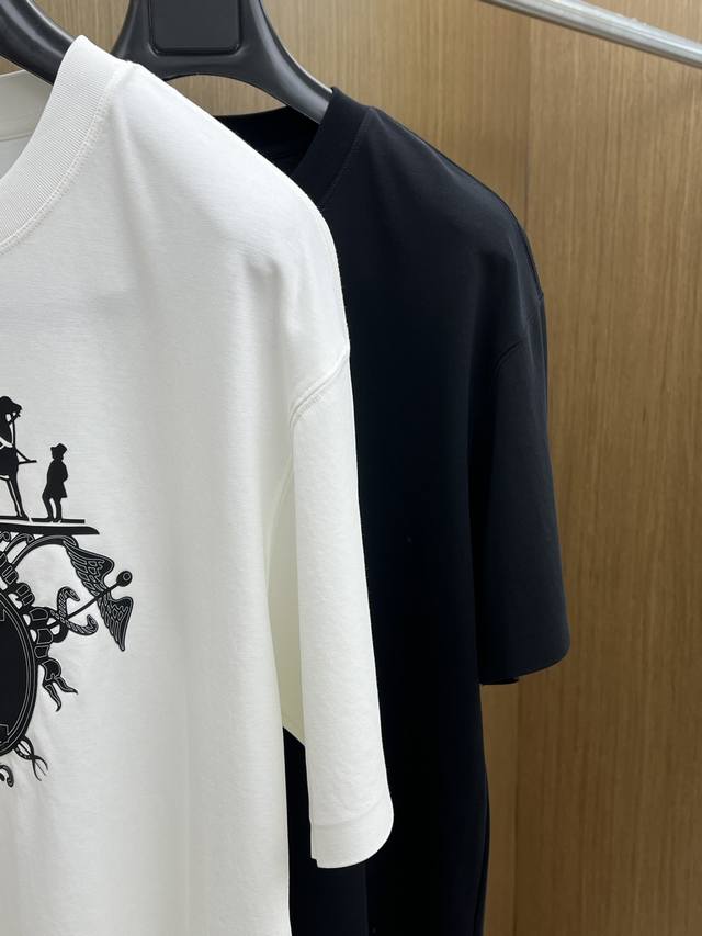 New product Her counter new high-end fabric 250 grams of pure cotton 2025 Spring and Summer counter new product short-sleeved fashion classic round neck short-sleeved cuffs and hem adopt seamless design fashion single product design, more fashionable and comfortable, high standard customization, very stylish upper body, brand classic Logo pattern on the chest customer-supplied accessories, customer-supplied imported high-end fabrics with very delicate texture, exquisite details and exquisite craftsmanship, a highly plastic item, can be matched with any fashion, the version is super good Fls trendy men's must-have item size: S-Xxl!