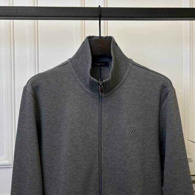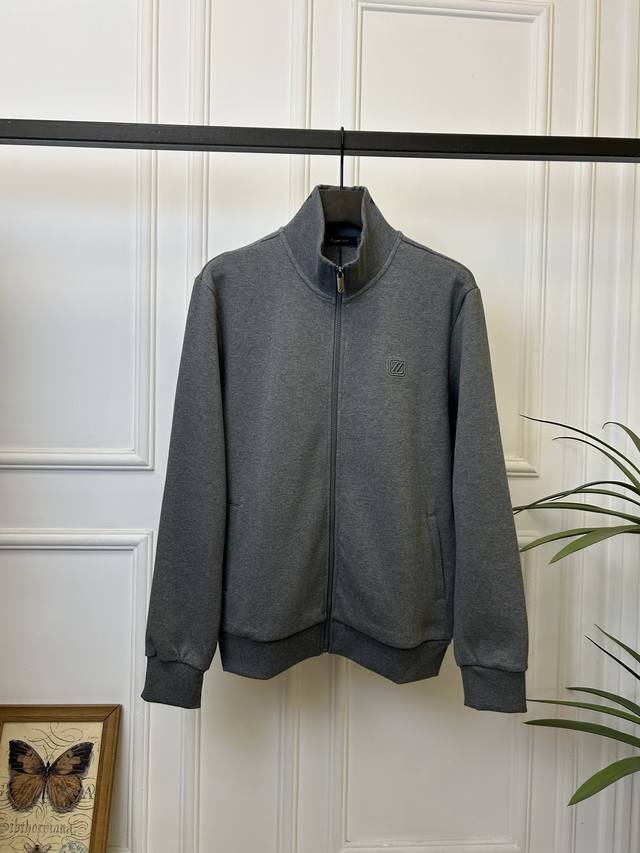 New Zegna Autumn/Winter Collection: This stand-collar zip-up jacket and casual trousers air-layer set perfectly embodies understated luxury in a modern style. The jacket features a three-dimensional stand-collar design with a smooth zip-up closure, and a delicate brand logo on the left chest, showcasing Italian craftsmanship. The trousers are loose-fitting and feature a practical drawstring waistband and subtle logo details on the body, ensuring comfort and freedom of movement. The overall design is predominantly black, using high-quality materials that offer both crispness and a soft feel against the skin, suitable for business casual and everyday social occasions. Through minimalist lines and thoughtful details, this outfit demonstrates Zegna's design philosophy of blending century-old heritage with contemporary practicality, making it an essential choice for those who pursue superior quality and fashionable taste. Model 173cm, 143kg, size 50 (Ddd Fok DDD)