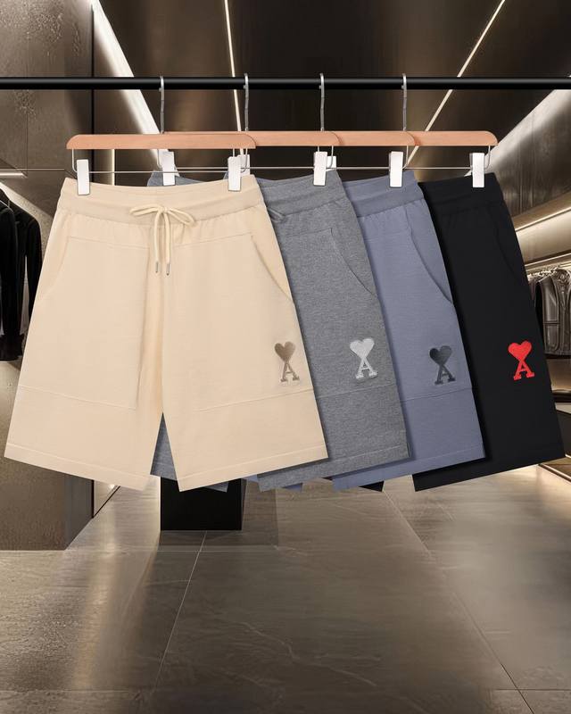 Next-day shipping. Ami Heart Macaroon Logo Embroidered Casual Sports Shorts. 2025Ss official website new original fabric. Custom mesh sweater knit fabric for a high-end version. Custom-made fabric for breathability and comfort. Exquisitely crafted with impeccable detailing, custom logo engraved buttons, and all three labels. Brand elements and design concepts embody high quality. Soft and smooth feel! A casual cut with a stunning upper body. Available in apricot gray, blue, and black. Sizes: M-2Xl