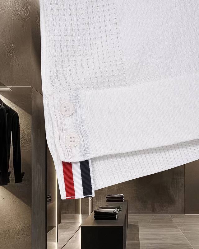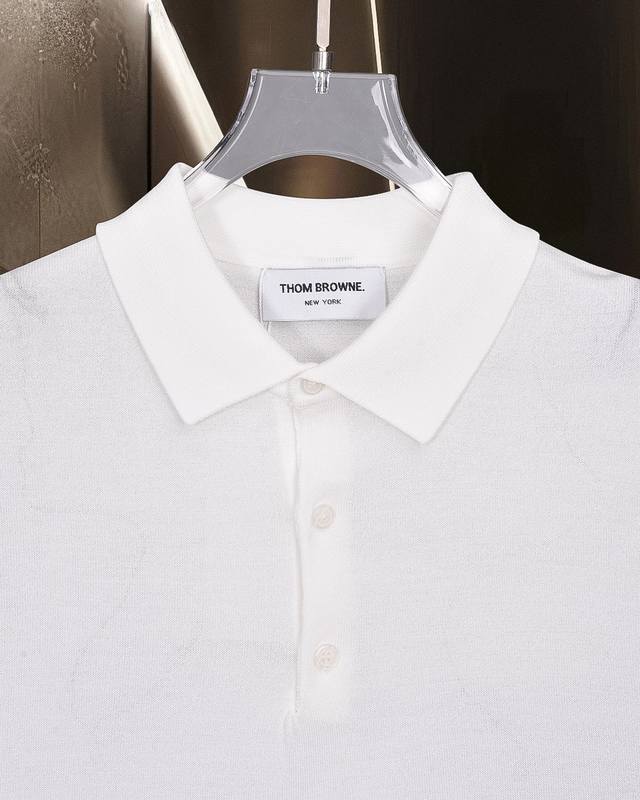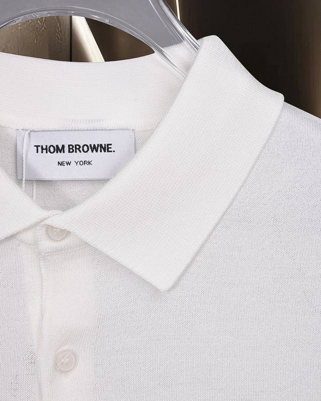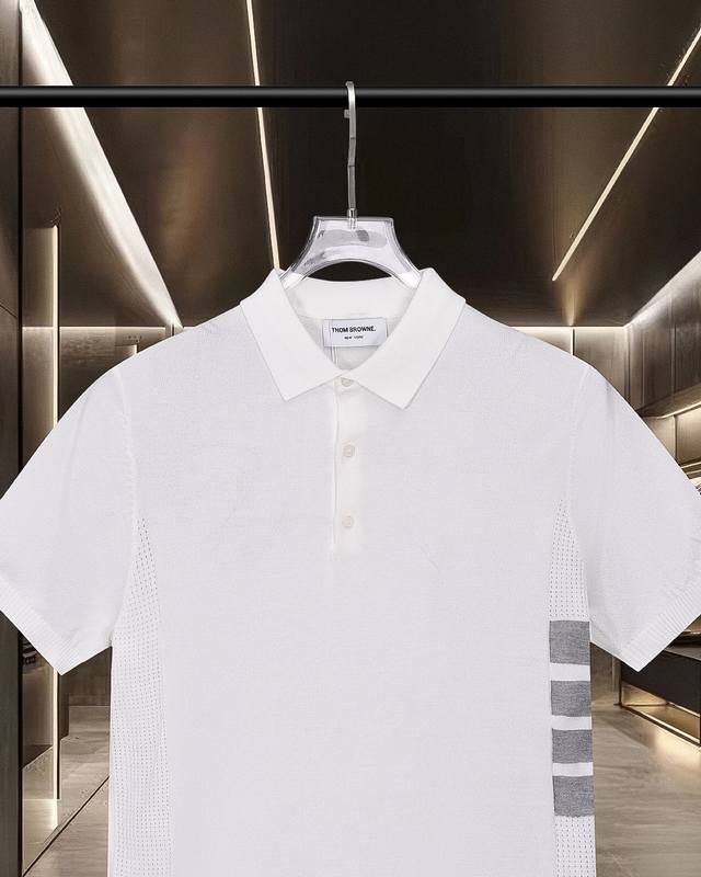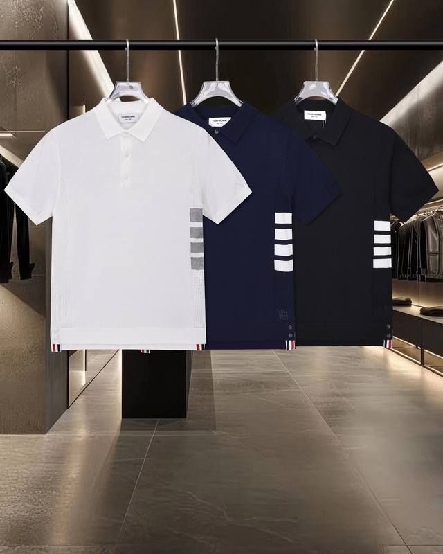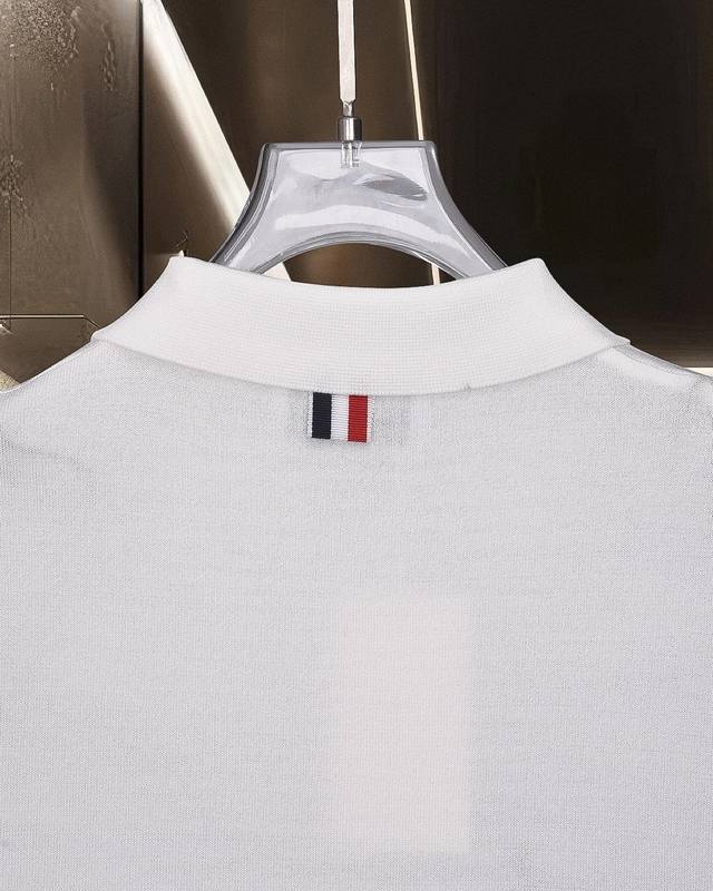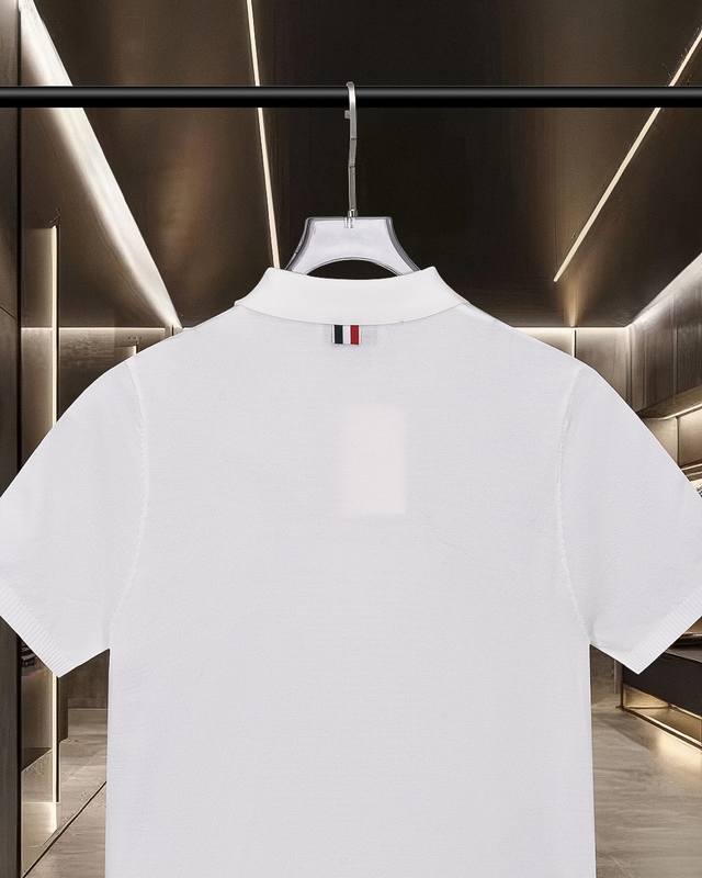 Next-day shipping. Thom Browne Tb four-bar knitted casual short-sleeved polo shirt. 2025. Made from the official website's original fabric, this polo shirt is custom-made from mesh sweater and high-end knit fabric. Custom-made fabric is breathable and comfortable, meticulously crafted with impeccable detailing. Custom-engraved buttons with logos and all three labels are included. Brand-inspired design reflects high quality. Soft and smooth to the touch! This casual cut features a stunning upper body. Available in white, blue, and black. Sizes: M-Xxxl.