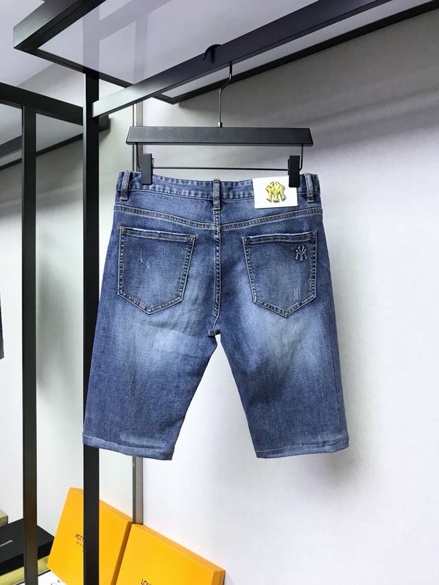 Ny, original foreign trade denim shorts in stock, thin 5-point shorts, undeniably fine workmanship, logo design, copper hardware, washed, selected high-quality polyester fiber fabric, soft and delicate feel, a must-have item for summer, super handsome effect on the body, super realistic shooting, close-up contact texture! Sizes: 29-38.
