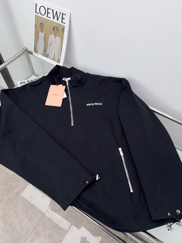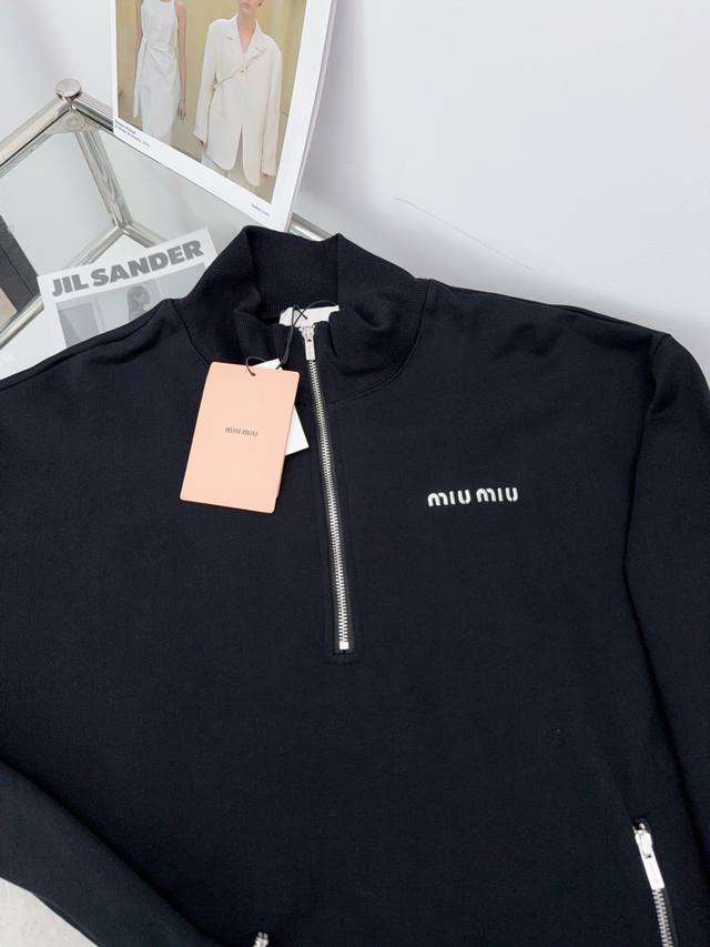 O766 Mu Miumiiu Classic Half-Zip Stand-Up Collar Sweatshirt