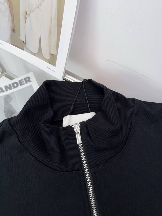 's stand-up collar and zipper design are incredibly unique, easily creating a high-quality, intellectually chic look.