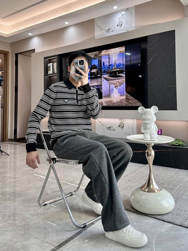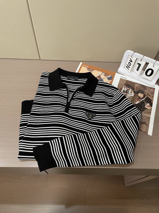 prad 2025 Autumn/Winter Haute Couture Urban Style Classic Simple and Elegant Collared Knit Sweater. Made with imported wool blend fabric, soft and delicate. A must-have basic in every man's wardrobe, this sweater can be paired with various outfits anytime, anywhere to meet your daily needs. The design is very simple. Grab yours now! Sizes: M-XXL