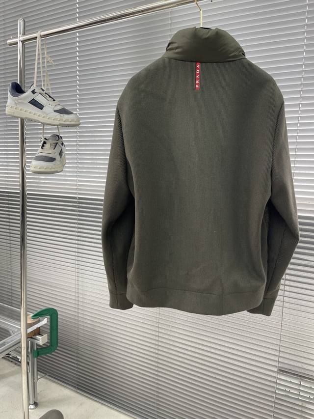 prad 2025Fw New Style Stand-Up Knit Down Patchwork Jacket. A best-selling item in DDD stores. Made with original custom fabric, the chest is down-filled, while the back is a single piece of high-count wool knit fabric, creating a stand-up, stylish look. Anti-pilling fibers are added to reduce the likelihood of pilling. The brand logo is prominently displayed on the chest for high recognizability; customer-supplied hardware and accessories, produced in the brand's factory, with impeccable details. A fashionable and versatile patchwork jacket. DDD Sizes: 48-56 M-3XL