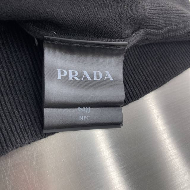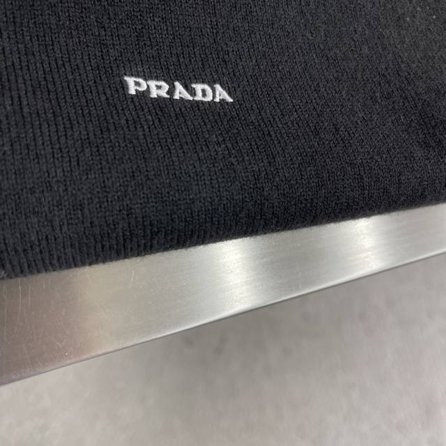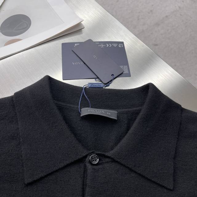 prad 25Fw New Long Sleeve Wool Polo Sweater This polo sweater is a wardrobe classic with a refined silhouette and sporty elegance. It features long sleeves and is made from worsted wool. The soft and simple garment is finished with an embroidered monogram logo in a contrasting color.
