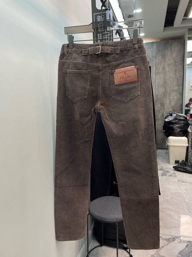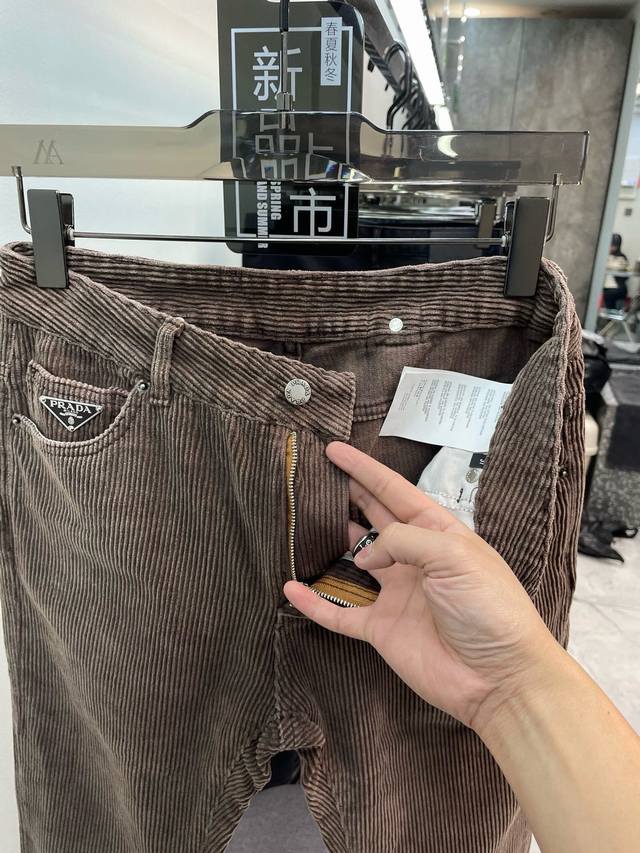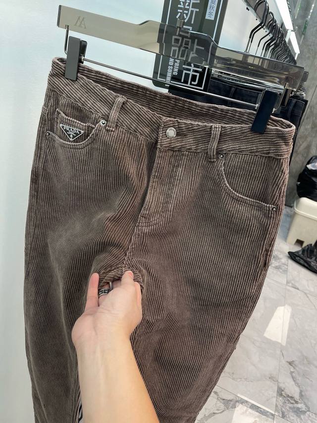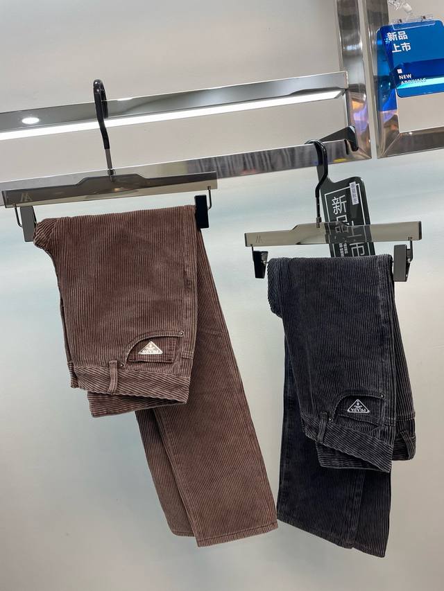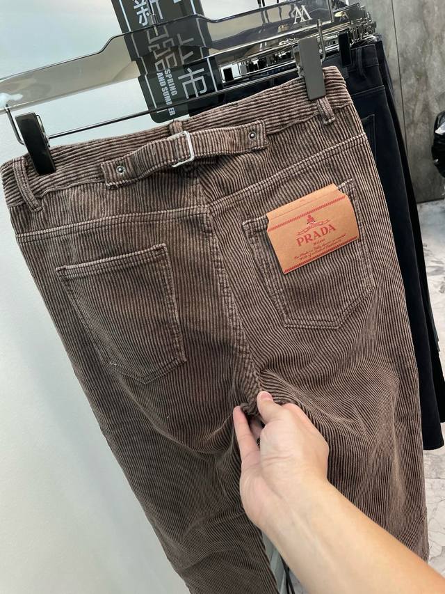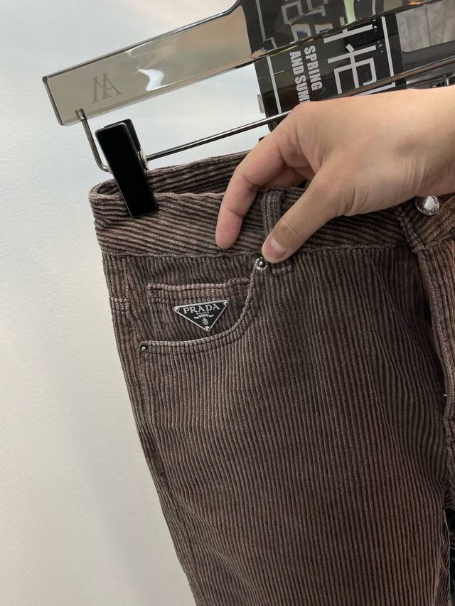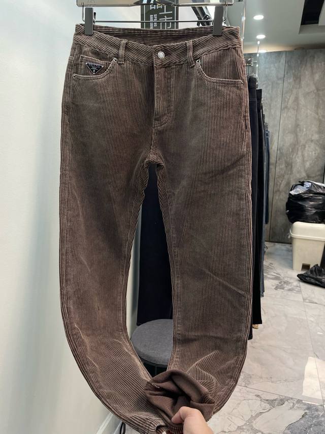 prad popular first release, sandblasted retro street style corduroy fabric, normal straight and simple, department store best-selling item, custom-made, color matching hardware, triangle logo, luxurious high-quality, soft and skin-friendly surface, craftsmanship + washing, export quality, details are all in place, department store autumn and winter hot sale, pre-sale, sold out. Sizes: Black 31, 32, 33, 34, 36; Brown 30-38, no 35, 37. DDD