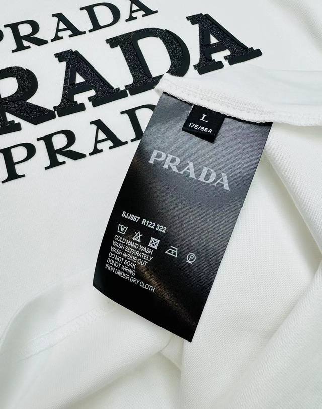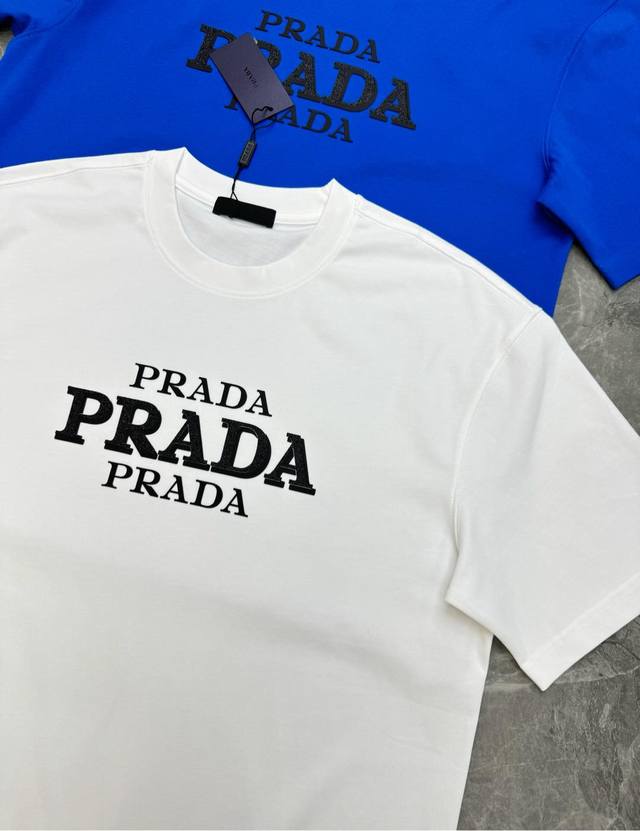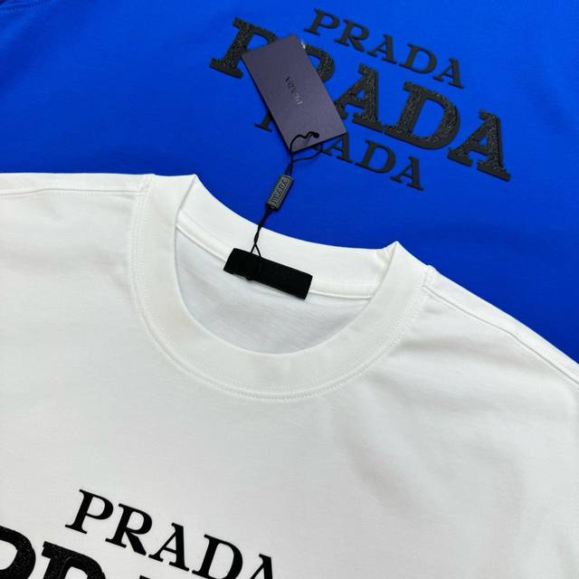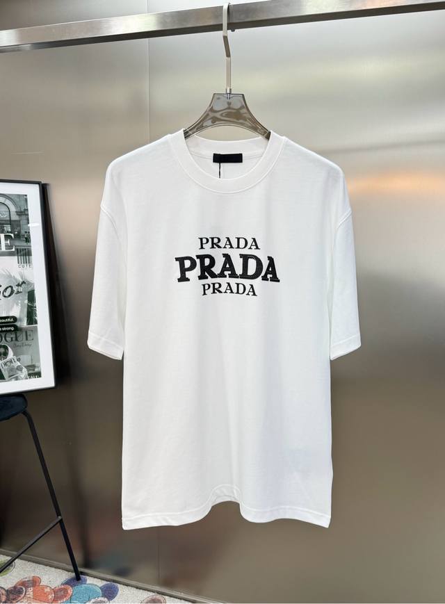 prad* Prada's new T-shirt. 25S, unisex! Available now on the official website. High-definition, basic, double-layered print with lettering. Excellent texture, comfortable, and breathable, for an unforgettable look! Custom-made from high-quality 40s/280g cotton fabric. Comfortable and soft