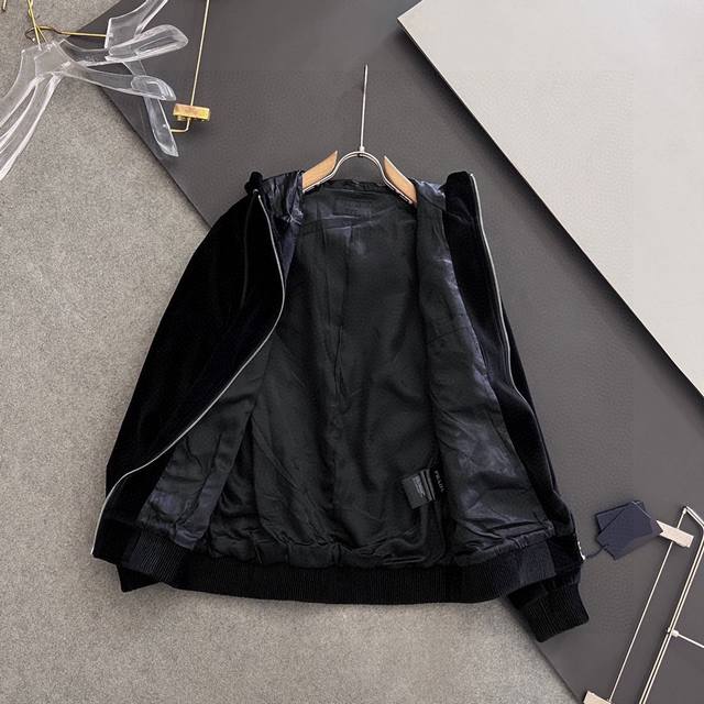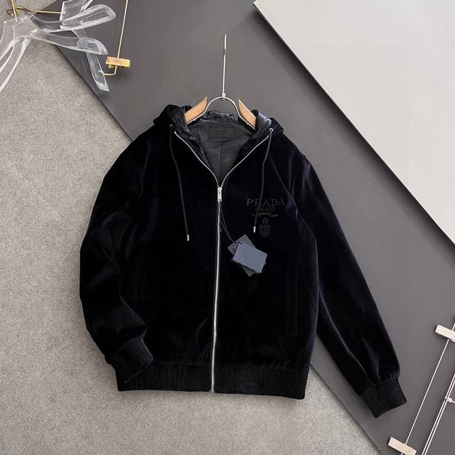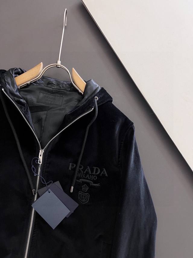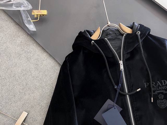 prad* Velvet hooded jacket. This jacket is made of professionally customized vel