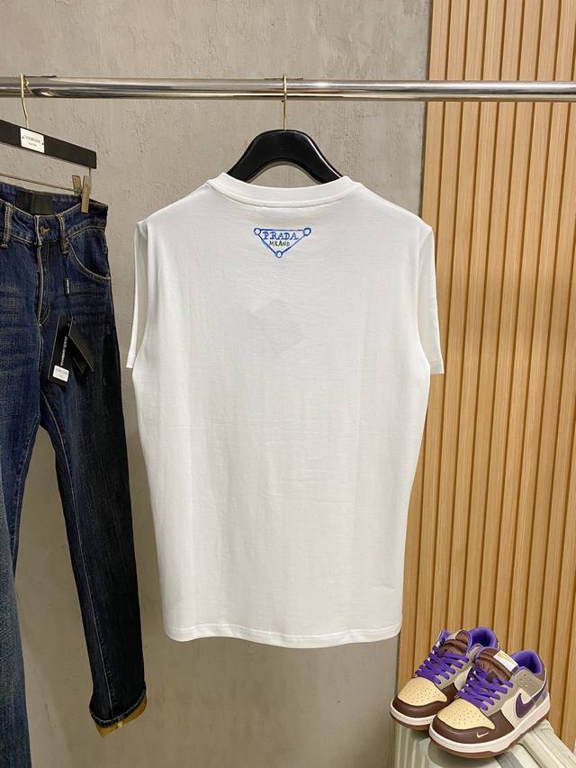Prada 2026 Spring/Summer New Unisex Short-Sleeve T-Shirt, Latest Exclusive Online Release!! ~ Classic yet fashionable and versatile, who wouldn't love it? A timeless design, exuding understated luxury and high recognizability! A perfect blend of traditional brand philosophy and modern technology. Featuring a minimalist design with an ultra-modern and chic style, and an exclusive logo design! Made with 100% imported pure cotton fabric! The quality is truly impressive; you can feel the premium feel and the breathability is top-notch! Sizes: S-2XL