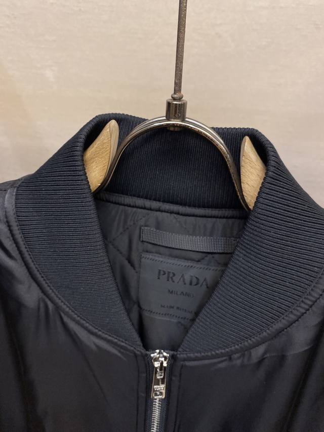 Prada 25FW show-style zippered flight jacket with stand-up collar