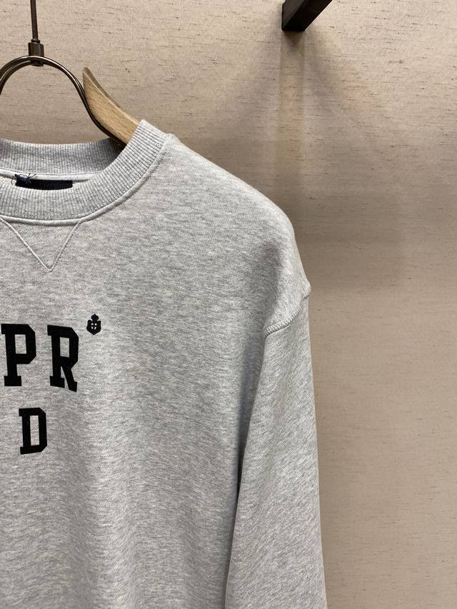 , originally priced at 200 yuan; cotton sweatshirt fabric, oversized design, abbreviated letter print, ribbing on the cuffs and hem, triangular logo embellishment, and a full set of trimmings. # Pure Cotton Fish Scale Base Fabric