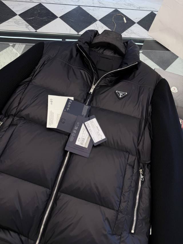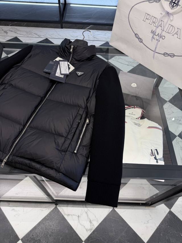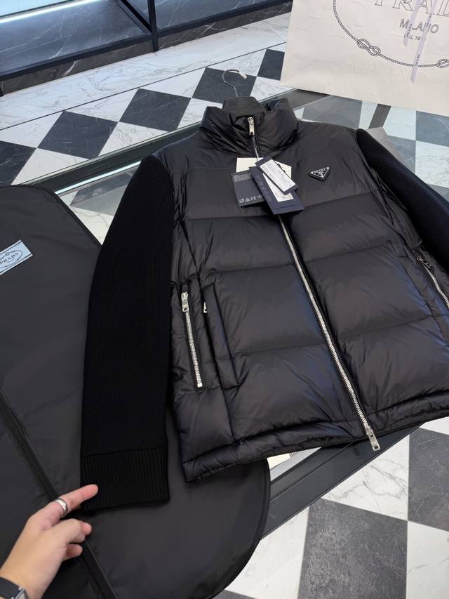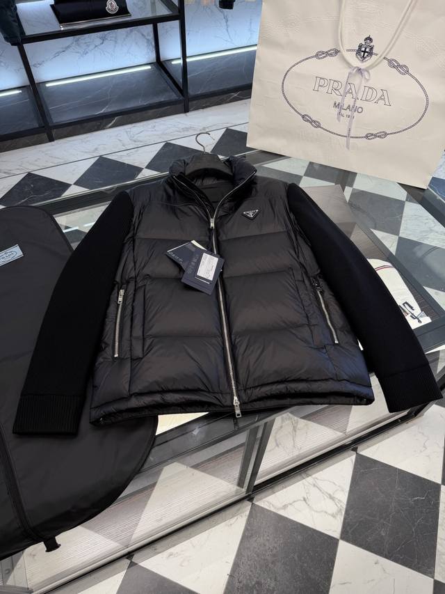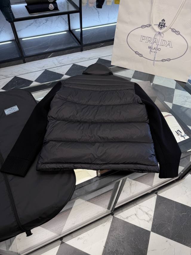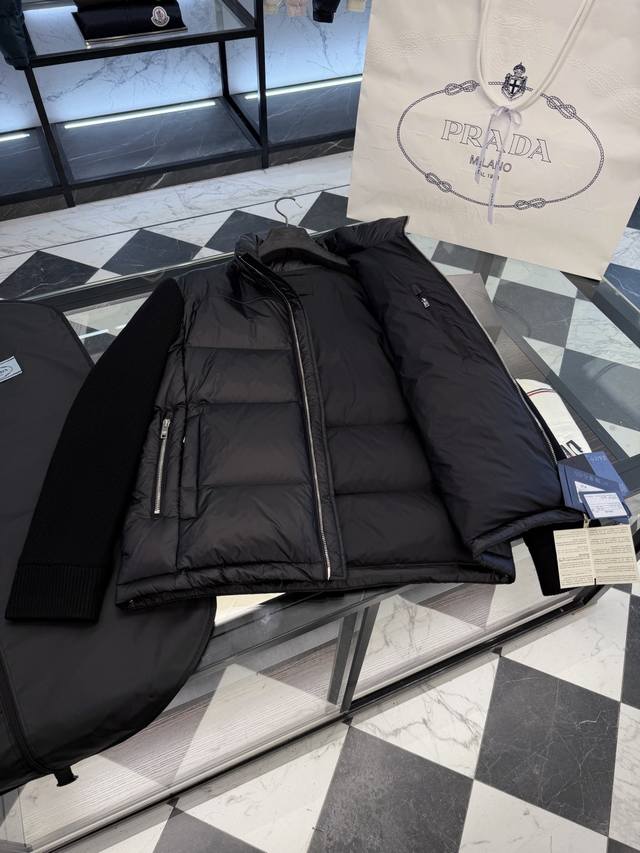 Prada classic knitted down jacket. Soft nylon fabric. Lightweight and comfortable to wear. More detailed photos. DDD