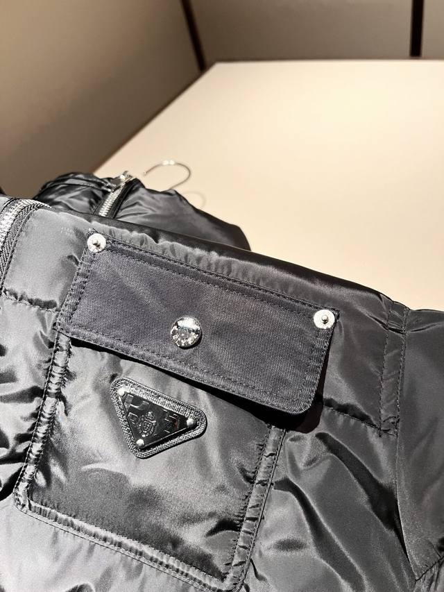 prad*A Prada 2025 Autumn/Winter Unisex Down Jacket, In Stock! Prada has reintroduced the classic Prada Linea Rossa to the market as an iteratively updated tech series, responding to the core content of 21st-century ideology. This is clearly Prada's flagship down jacket, suitable for all ages and genders, perfect for couples and young women! I won't go into too much detail, it's all top-of-the-line. This Prada jacket has everything a top-tier down jacket or coat should have, or rather, it's even better!! Features include a windproof zipper closure, a logo badge on the chest, and an outer layer made of coated polyester fiber. It's leak-proof, waterproof, and windproof