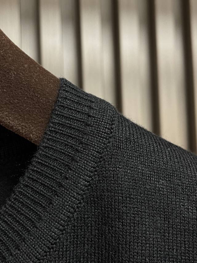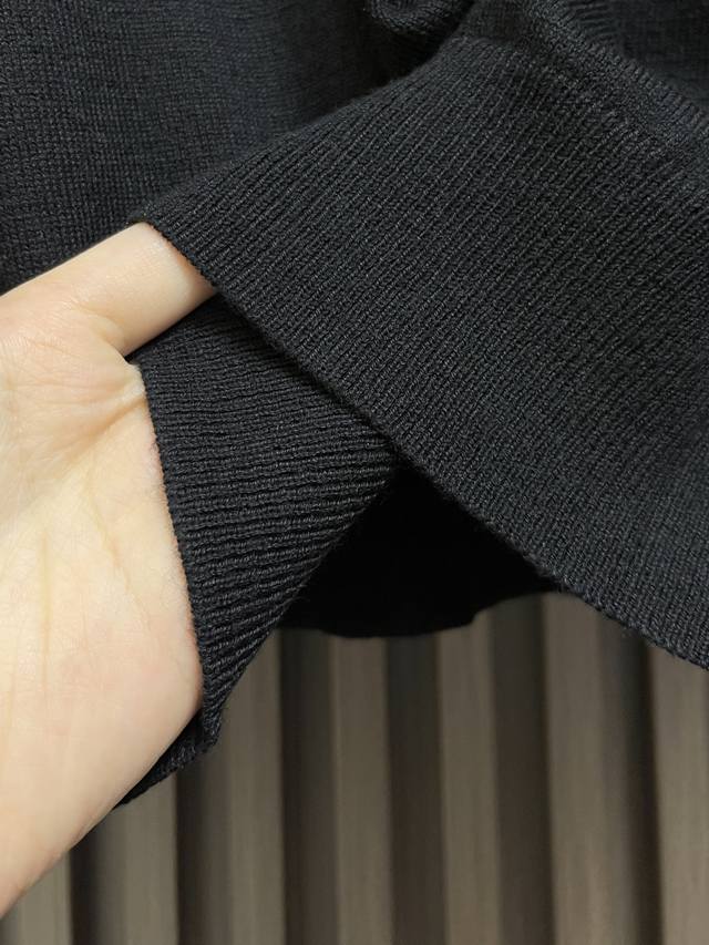 Prada small letter embroidered knit sweater, made from 80% wool and 20% cotton. This sweater is made from high-content wool yarn, and the finished garment weighs approximately 220-240g. It's lightweight and warm as a base layer. The chest features a small, 3D embroidered logo, a new design from the brand's 25 styles. The garment is washed to remove wool impurities and maintain a fixed shape. This worsted wool sweater is a staple in the Prada wardrobe, offering a simple silhouette. Soft and lightweight, it's accented by the contrasting embroidered letter logo. Sizes: 46-52