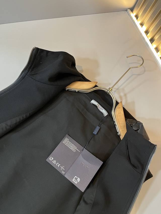 prad*A's 2025 Fall/Winter casual vest jacket features the latest in stylish casual zipper jackets. This jacket is crafted from p's professionally customized pure cotton fabric, boasting a smooth, lustrous finish that's visible even through the screen. It's comfortable and lightweight, offering the ultimate in comfort! The exquisite logo accents on the chest enhance the overall luxurious feel, creating a high-end, instantly recognisable luxury. Sizes: M-3Xl
