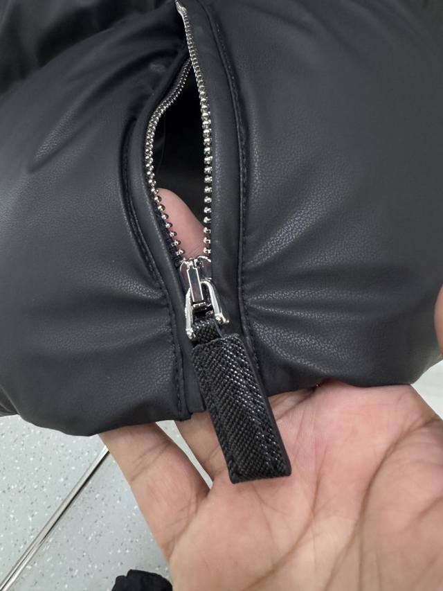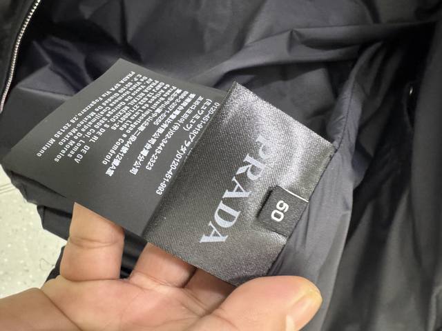 continues Prada's renowned draping technique, featuring a slightly widened H-shape on both the front and back for a slimming and stylish look. It provides warmth while leaving room for style in cold winter weather. The signature Prada triangle logo is featured on the chest, and an imported triangle leather label is sewn on the back.