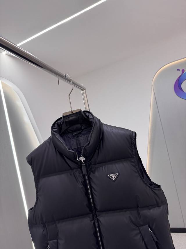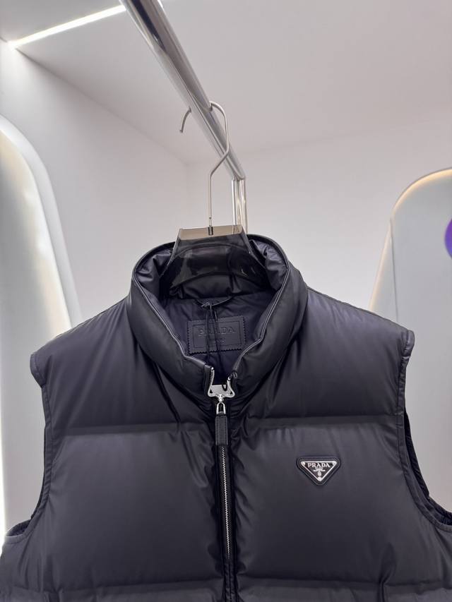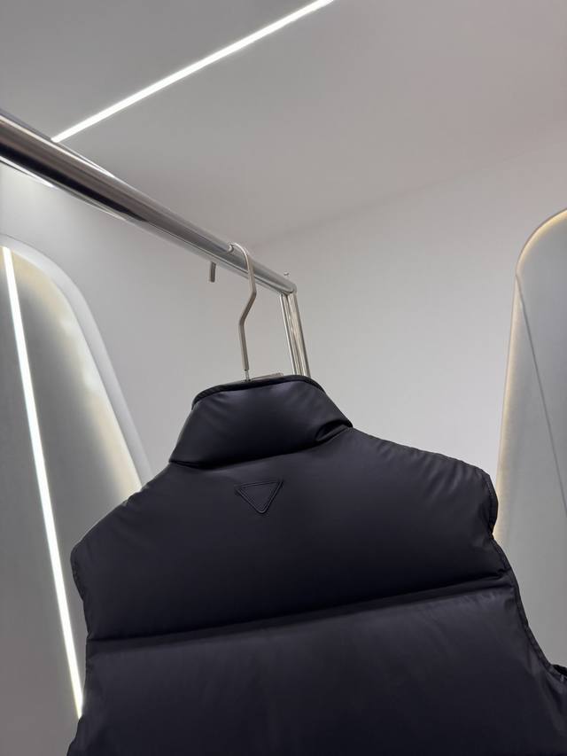 features a classic stand-up collar. The Jb16 stand-up collar is cut with a sharp, crisp silhouette, framing the neck and creating a refined, gentlemanly look. This subtle touch highlights the brand's identity, and the versatile vest's style instantly elevates any outfit, whether paired with a simple top or a casual sweatshirt.