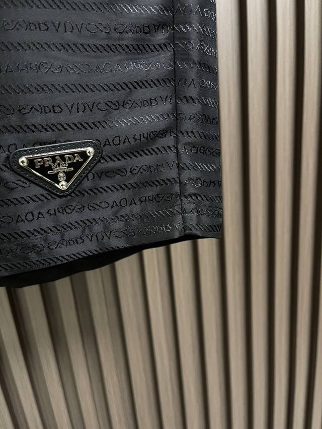 Prada's new men's quick-drying shorts for Spring/Summer 2025! The ultimate in casual chic, the original silhouette offers a versatile, effortless, relaxed look. Made from custom-made quick-drying fabric with all-over jacquard print and custom-crafted with the classic logo triangle, they're incredibly comfortable. Drawstring closure. Sizes: S-Xl