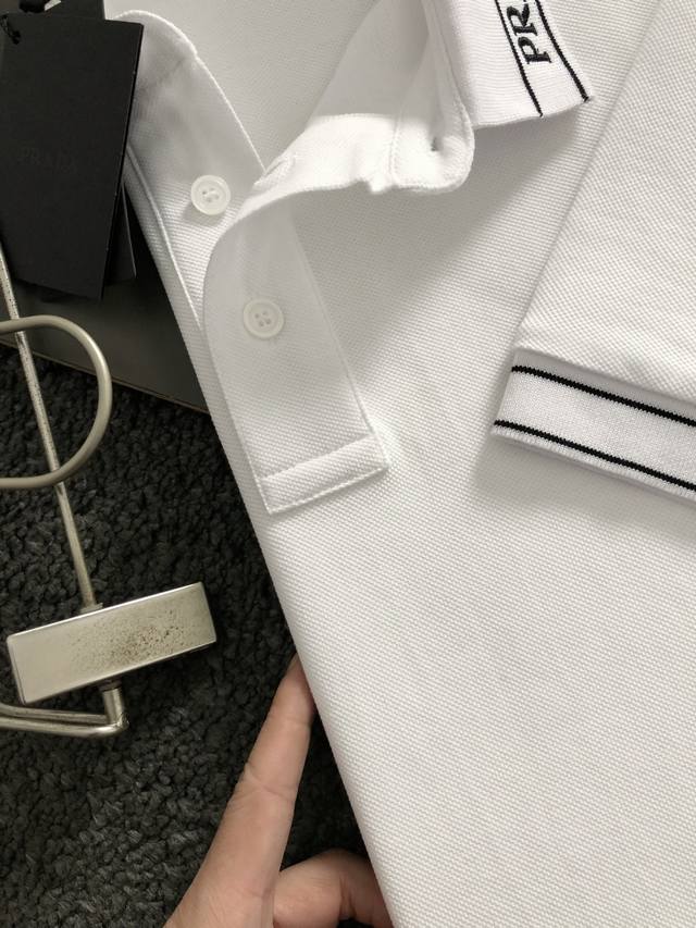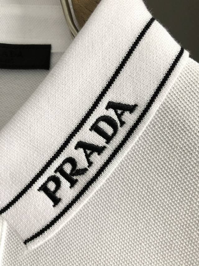 prad**Authentic Size S-XL Ddd 2026 Spring/Summer Short-Sleeve T-Shirt. Featuring intricate embroidery on the neckline and cleverly incorporating Y -neckline detailing, this T-shirt breaks away from the monotony of traditional short-sleeve shirts, showcasing individuality and a free-spirited style. The three-dimensional cut flatters the figure, with a clean and stylish design that effortlessly elongates the legs, creating a relaxed and carefree look. Made from high-quality, comfortable, and warm fabric, it's suitable for everyday wear or light outdoor activities. The triangular jacquard detail on the back adds a touch of sophistication. Whether paired with a casual T-shirt and jeans or layered for a mixed-and-matched look, it's easy to style and an indispensable fashion item for the autumn/winter transition. Ddd Available in Black and White DDD