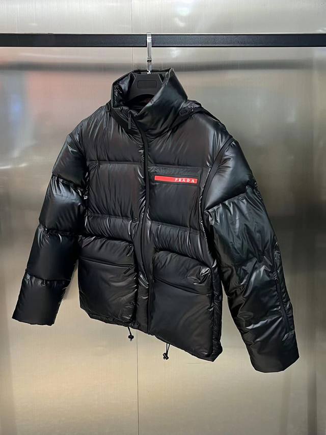 prd 2025Fw Linea Rossa series down jacket with sleeveless design. This high-end jacket is a two-in-one, available at the same retail price of nearly 20,000 yuan! Fully waterproof and taped! This waterproof and breathable down jacket is made from Komatsu Matere fabric with an Ustamock-Aq membrane, offering windproof, waterproof, highly breathable, warm, stretchy, and abrasion-resistant properties. The fabric is imported and supplied by our customers for a soft, smooth, and lustrous feel. The lining is 95% goose down, carefully selected for its exceptional loft and resilience, ensuring unmatched warmth and warmth. The zipper is taped with a premium taping process, and features a classic red leather logo on the chest and waterproof, taped horizontal zippered pockets below the logo. The jacket's design is incredibly stylish, with double-sided zippers and pockets. A must-have for high-end down jackets. Unparalleled warmth and comfort, lightweight and unrestrictive, this must-have is incredibly comfortable and warm! A top-tier piece with both resilience and warmth! Bll